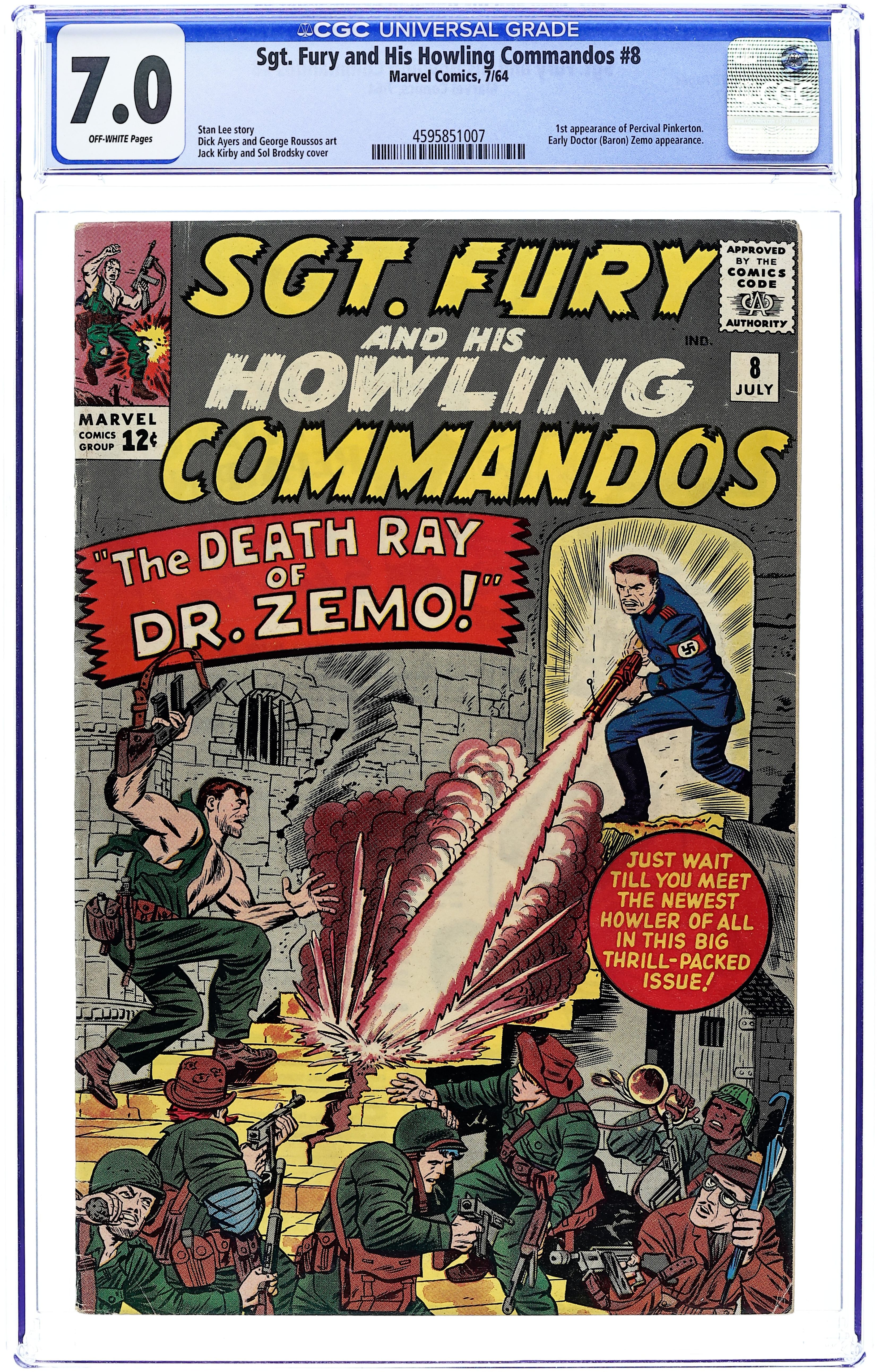 Starts Jan 3 Cover pencils by Jack Kirby. The Death Ray of Dr. Zemo, script by Stan Lee, pencils by Dick Ayers, inks by George Roussos; Nick Fury and his commandos are ordered to capture a nazi scientist, Dr. Zemo who has invented a "Death Ray". 36 pgs. $0.12. Cover price $0.12.