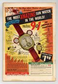 Starts Apr 4 The Justice Society of America fight robots in the year 3000 A.D. in "The Day the World Ended." Script by John Broome, pencils by Frank Giacoia (chapters 1, 3, and 4) and Arthur Peddy (chapter 2), inks by Giacoia (chapters 1, 3 and 4) and Bernard Sachs (chapter 2). Back-up Johnny Peril's Surprise Story, "The Girl From Aquaterra." Two-page article, "How Far is Far Away?" Peddy/Sachs cover. 52 Pages, Full Color. Cover price $0.10.