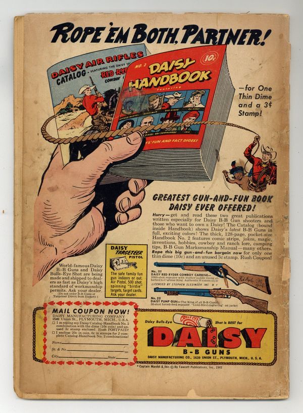 Starts Apr 4 The Justice Society of America star in "The Adventure of the Invisible Band!" Script by John Broome. Pencils by Irwin Hasen (splash page and chapters 1 and 3) and Arthur Peddy (chapter 2), inks by Bob Oksner (splash and chapters 1 and 3) and Bernard Sachs (chapter 2). Back-up story, "The Fabulous Ride of Portugese Jack!" Back-up Johnny Peril's Surprise Story, "Colossus!" Two-page article, "In the Days of Knights" by John Osgood." Peddy/Sachs cover. 52 Pages, Full Color. Cover price $0.10.