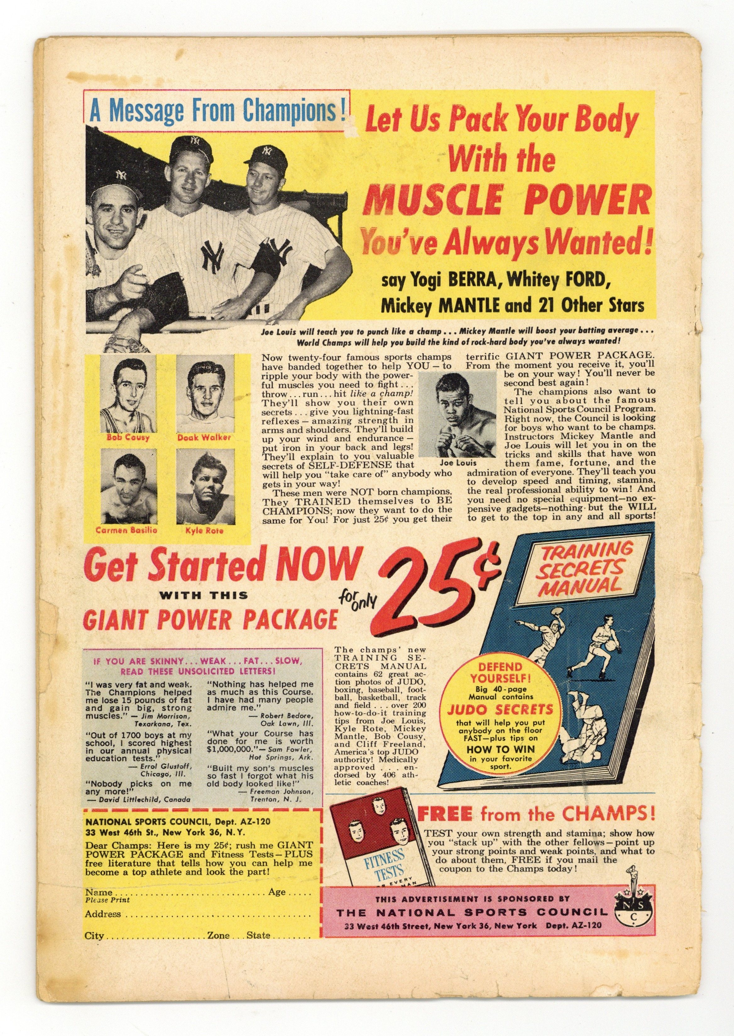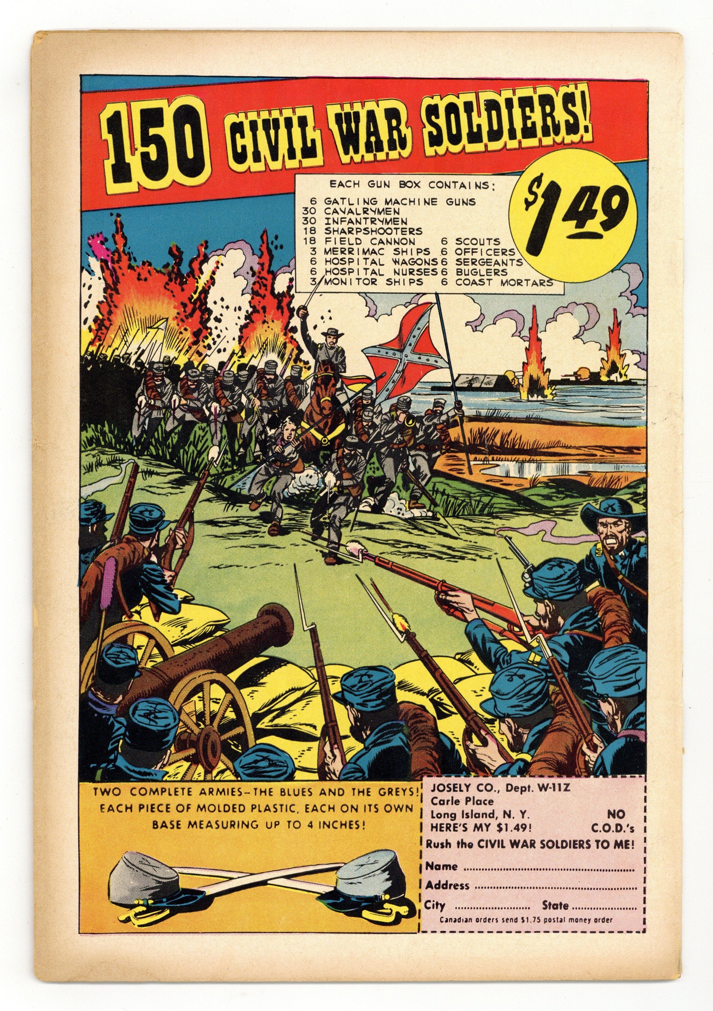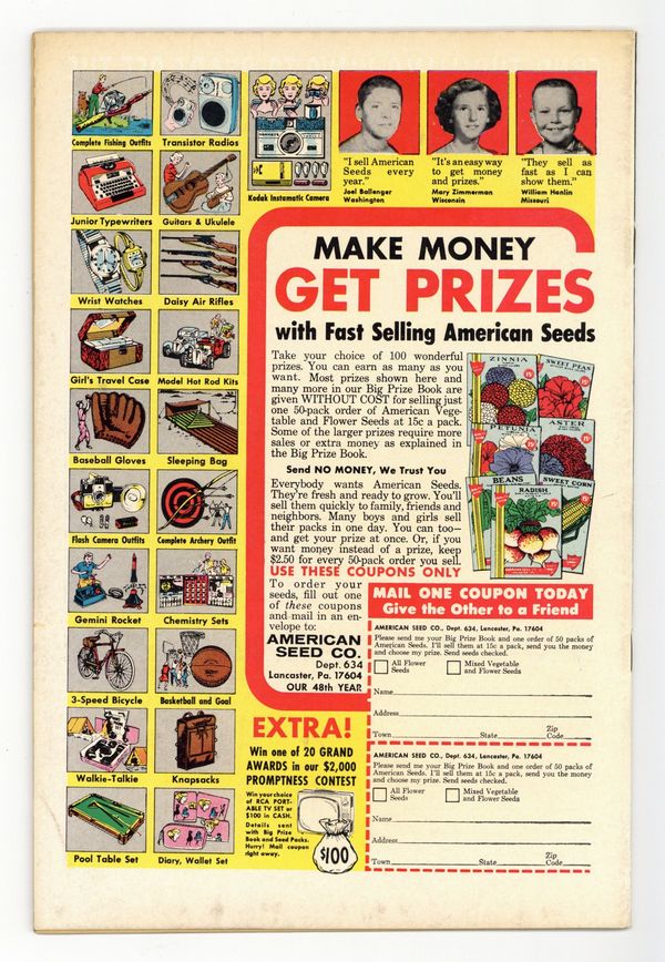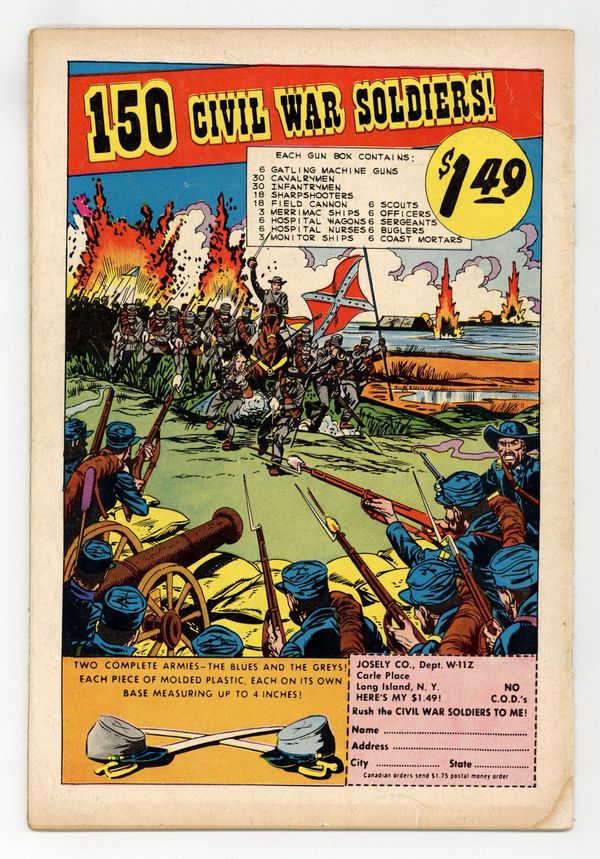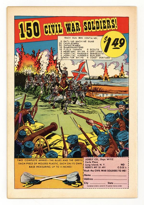 Ends Dec 8 8:43 PM CST Bid History 4 bids Current Bid $34 Your Secret Max Bid If you'd like to bid, please log in or register. Cover pencils by Mike Sekowsky, inks by Murphy Anderson (center panel) and Bernard Sachs (vignettes). Crisis on Earth-A!, script by Gardner Fox, pencils by Mike Sekowsky, inks by Bernard Sachs; The JSA defeats the Lawless League and then the three monstrous creatures created by the Johnny Thunder of Earth-1; He concedes defeat and tells the Thunderbolt to turn back time to before he ever heard of him; T-Bolt then later stops Johnny when he's about to wonder if he has a counterpart on Earth-1 again, since all previous events were erased from everyone's minds. Star Names! fact page by Julius Schwartz. Nature's Bill of Rights public service announcement, script by Jack Schiff, art by Sheldon Moldoff. Rocky and Bullwinkle star in a one-page Cheerios ad. Cover price $0.12.