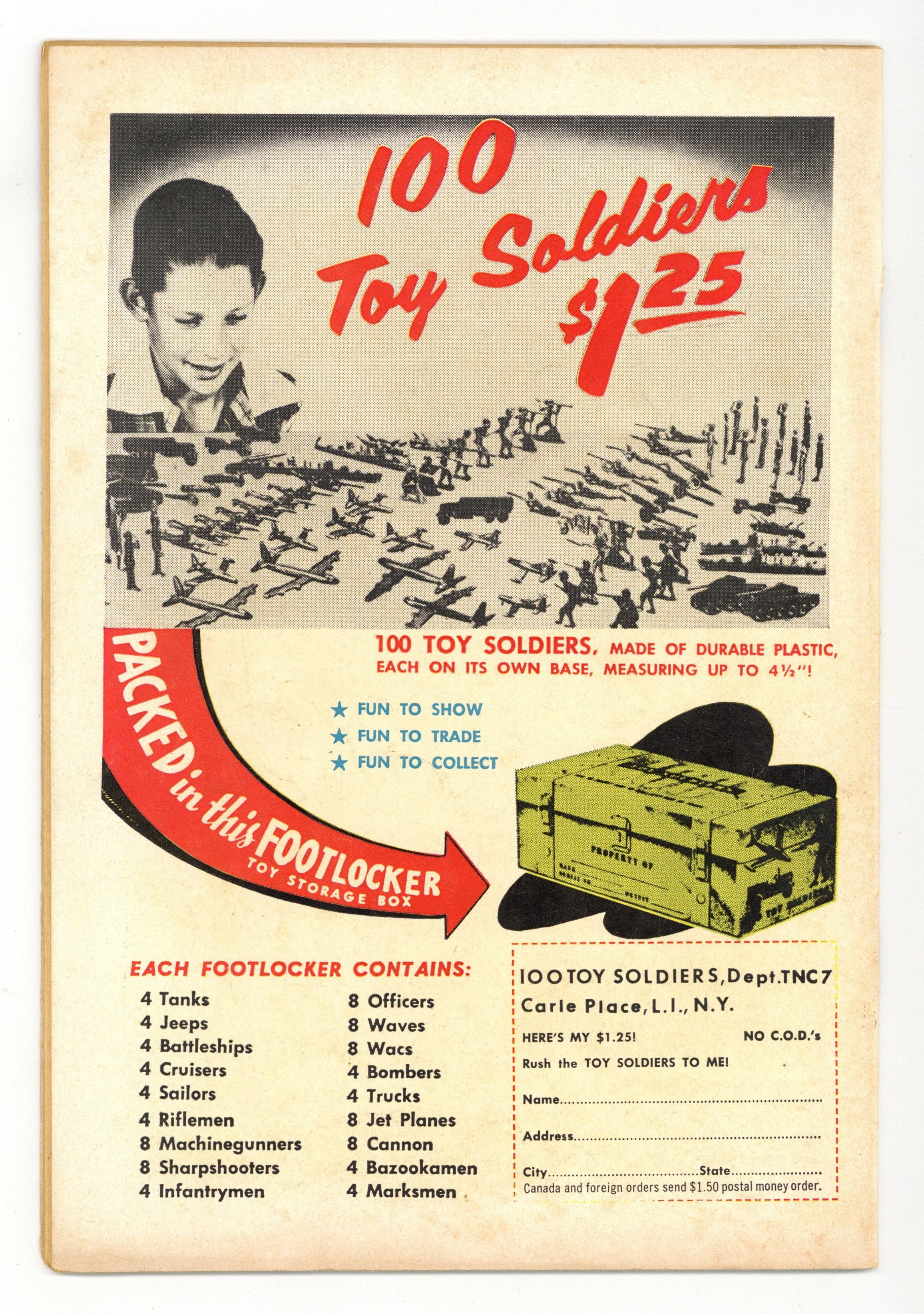 Starts Dec 8 Cover pencils by Mike Sekowsky, inks by Murphy Anderson and Bernard Sachs. Reprints. Starro the Conqueror, script by Gardner Fox, pencils by Mike Sekowsky, inks by Bernard Sachs. Starro vs. Green Lantern, script by Gardner Fox, pencils by Mike Sekowsky, inks by Joe Giella. Starro vs. Wonder Woman and John Jones, Manhunter from Mars, script by Gardner Fox, pencils by Mike Sekowsky, inks by Bernard Sachs. Starro vs. the Flash!, script by Gardner Fox, pencils by Mike Sekowsky, inks by Murphy Anderson. Starro vs. Justice League of America, script by Gardner Fox, pencils by Mike Sekowsky, inks by Bernard Sachs. Case of the Stolen Super-Powers!, script by Gardner Fox, pencils by Mike Sekowsky, inks by Bernard Sachs. When Gravity Went Wild!, script by Gardner Fox, pencils by Mike Sekowsky, inks by Bernard Sachs. Half-page index of the first 39 issues. Rocky and Bullwinkle star in a one-page Cheerios ad. 84 pgs. $0.25. Cover price $0.25.