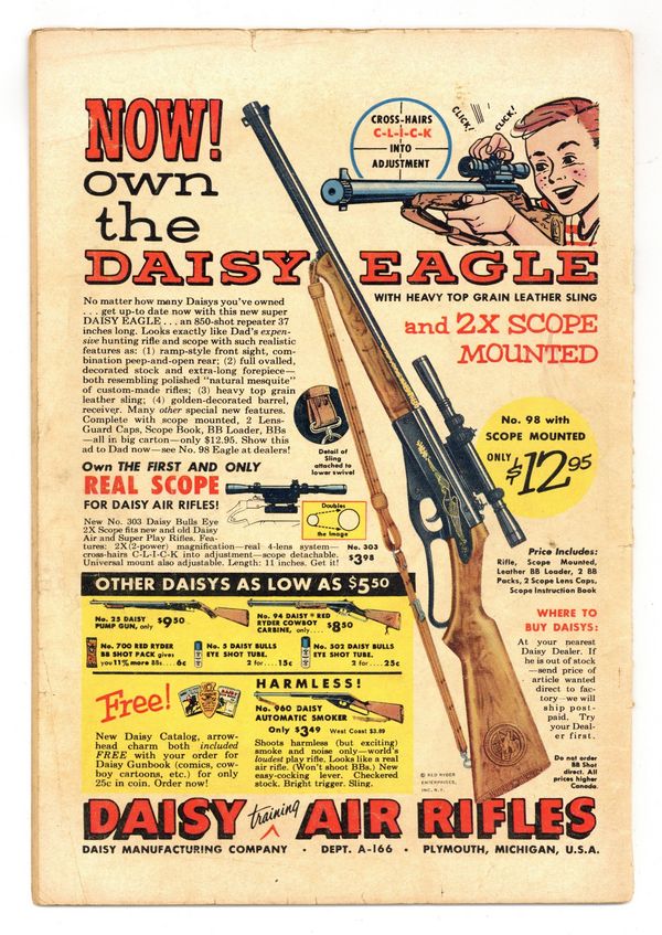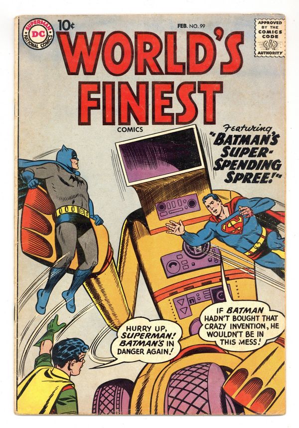 Starts Dec 8 Cover pencils by Curt Swan, inks by Stan Kaye. Batman's Super Spending Spree, script by Bill Finger, pencils by Dick Sprang, inks by Stan Kaye; Batman announces he is going to spend a million dollars; When his purchases turn out to be busts, Superman secretly makes them profitable, against Batman's wishes. Lem 'n' Lime humor two-pager by Henry Boltinoff. Crime Under Glass starring Green Arrow, script by Robert Bernstein, pencils by Jack Kirby, inks by Jack Kirby and Roz Kirby; Green Arrow and Speedy take down a gang of robbers using lenses in their crimes. The Frontier Rogues Gallery starring Tomahawk, art by Fred Ray. Odd News Items, script by Julius Schwartz, pencils by Morris Waldinger, inks by Tommy Nicolosi; before 1870, newspapers were not equipped with folding devices. 36 Pages, Full Color. Cover price $0.10.