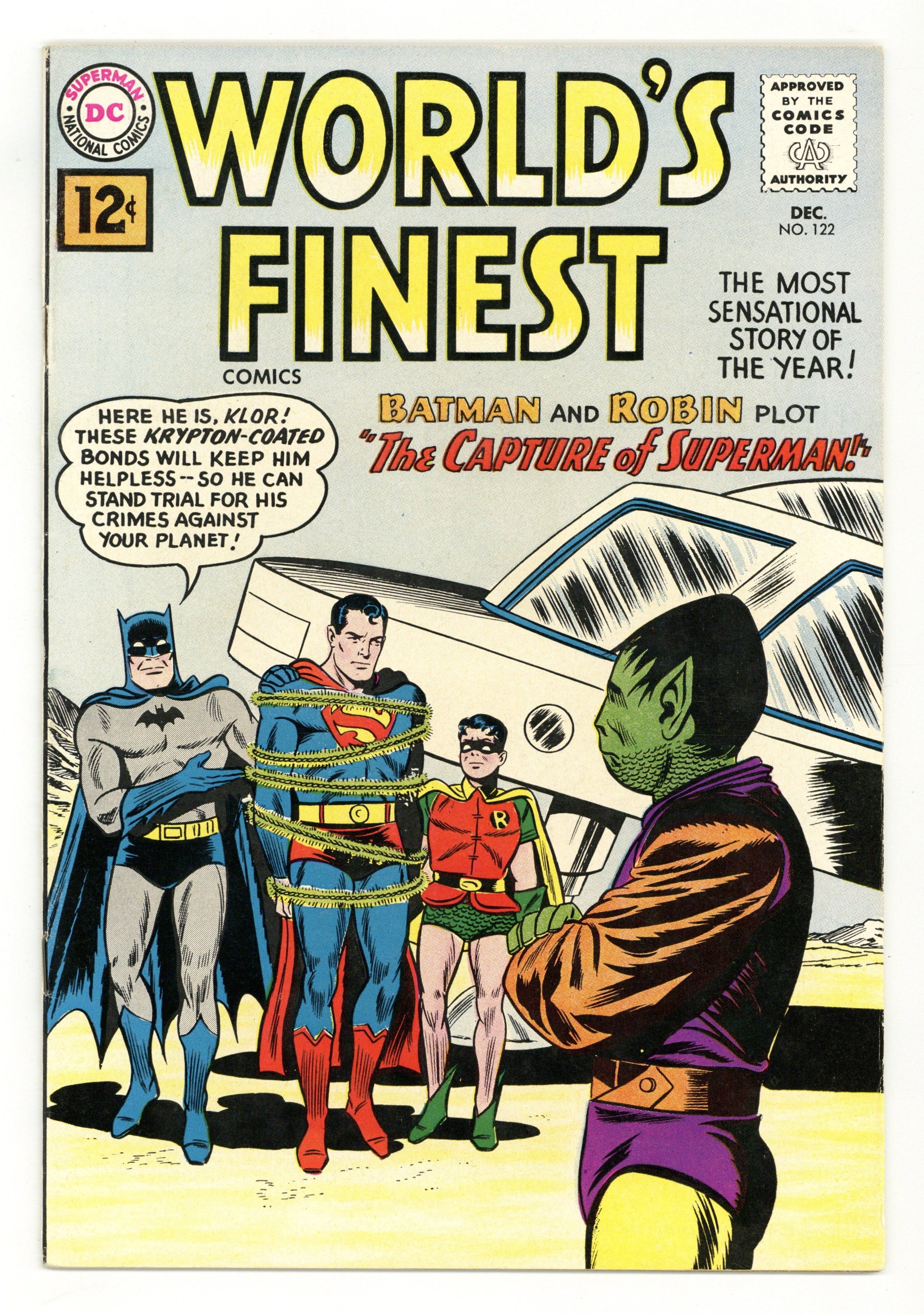 Starts Jan 3 Cover pencils by Dick Dillin, inks by Sheldon Moldoff. The Capture of Superman, script by Jerry Coleman, pencils by Jim Mooney, inks by Sheldon Moldoff; Klor of Belvos comes to Earth and demands Batman help him capture the dangerous space criminal Superman. Planeteer's Alien Allies starring Tommy Tomorrow, script by Jack Miller, art by Murphy Anderson. The Booby-Trap Bandits starring Green Arrow, script by Bob Haney, art by Lee Elias; Green Arrow and Speedy catch the Booby-Trap Bandits. 36 Pages, Full Color. Cover price $0.12.