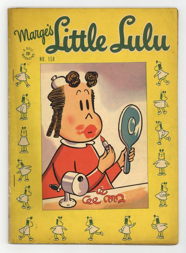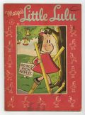 Starts May 11 Indicia title is "MARGE'S LITTLE LULU, No. 158." Little Lulu for President; Lulu and Tubby both decide they could grow up to be President; Tubby decides to copy George Washington's mythical feat of chopping down the cherry tree. Takes the Cake; Lulu goes with Tubby to the bakery; He buys a cake, but drops it on the way home;They take the cake to Lulu's house to try to repair it. Just a Gigolo; Lulu and a new girl, Dolly, try to bribe Tubby with candy and soda so he'll notice them. Lulu's Lamp; Lulu tells Alvin a story about when she was a poor girl who worked for a shoemaker; An old man gives her a magic lamp after she gives him some shoes; The lamp has a genie that can grant her any wish--except for one thing. Scripts by John Stanley, pencils by John Stanley (layouts) and Irving Tripp, inks by Irving Tripp. 52 pages, full color. Cover price $0.10.