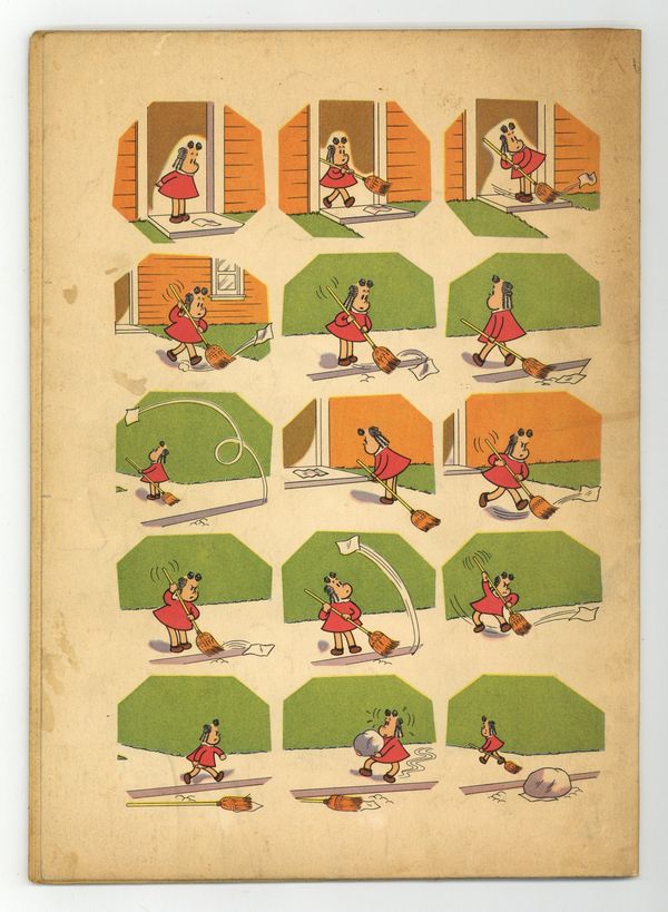 Starts Jul 4 Indicia title is "WALT DISNEY'S MICKEY MOUSE, No. 79." The Riddle of the Red Hat, script by Eleanor Packer, art by Carl Barks; Mickey laughs at Minnie's new hat, then mistakes a girl in a similar hat for Minnie; The girl mistakes Mickey for someone else and gives him a "diamond ring" that actually contains a large ruby. Pluto the Hero, art by Vivie Risto. Goofy's Orphans, art possibly by Don Gunn. 36 pages, full color. Cover price $0.10.