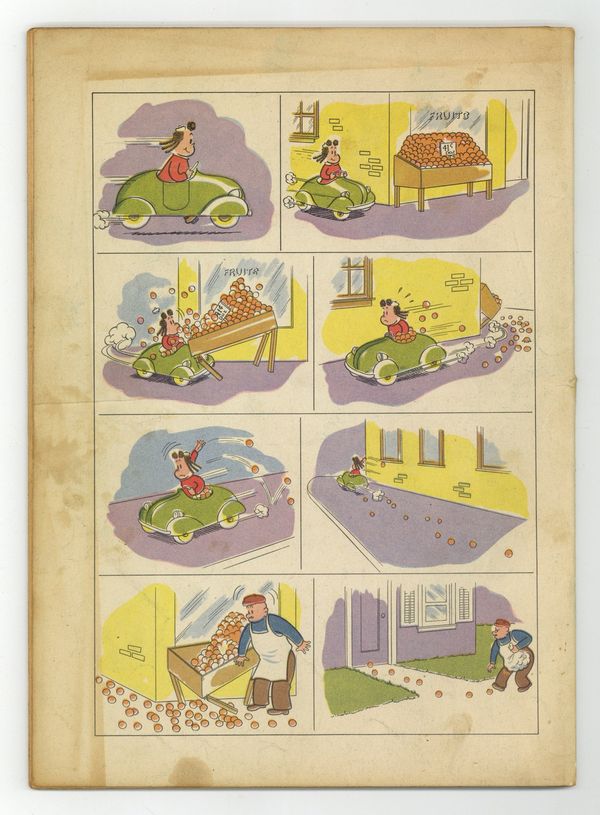 Starts Apr 20 Indicia title is "WALT DISNEY'S MICKEY MOUSE, No. 27." Cover art possibly by Ken Hultgren. The Seven-Colored Terror!, script and art by Ken Hultgren; Mickey, Minnie, and Pluto go to Lake Tranquil to take summer jobs, only to find that the tourist trade is being scared off by a ferocious seven-colored mountain lion. The Great Swami Mooh-lah, art by Ken Hultgren; Minnie inherits some money and decides to open a gift shop. Villain of the Victory Garden, art by Ken Hultgren; Someone is vandalizing Mickey and his friends' Victory Gardens. Untitled back cover strip, art by Ken Hultgren; Mickey and Minnie ride a bicycle and pull Pluto in a trailer behind them. 68 pages, full color. Cover price $0.10.