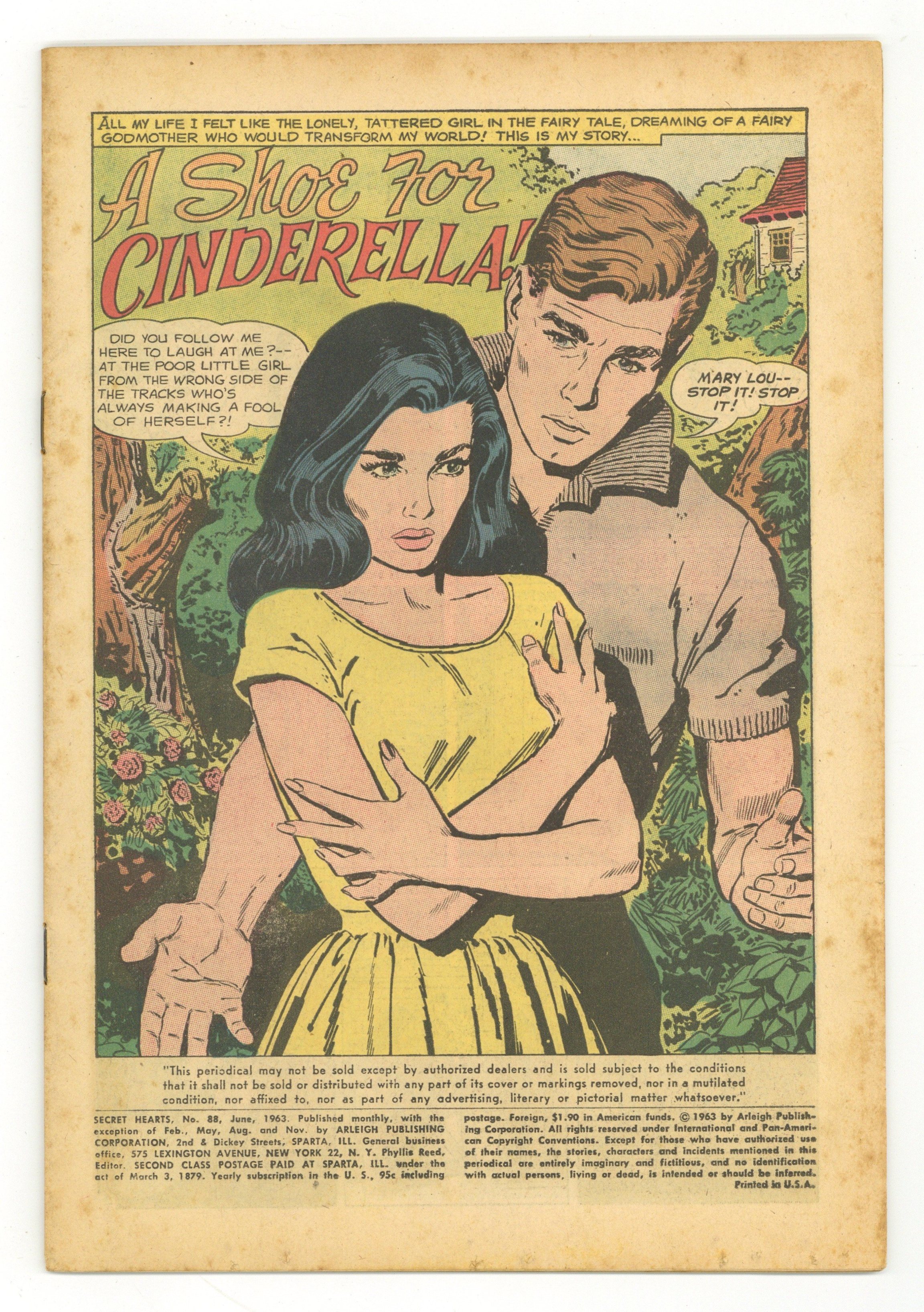 Starts Dec 8 Cover pencils by John Romita. A Shoe for Cinderella!, pencils by Jay Scott Pike; when rich Rory Maxwell pursues Mary Lou she can only remember the way he treated her when they were children, and she thinks he's laughing at her all over again. Escape from Loneliness, inks by Bernard Sachs. Lose Your Love, pencils by Mike Sekowsky, inks by Bernard Sachs. Exit Love--Enter Heartbreak, pencils by John Romita. 36 pgs. $0.12. Cover price $0.12.