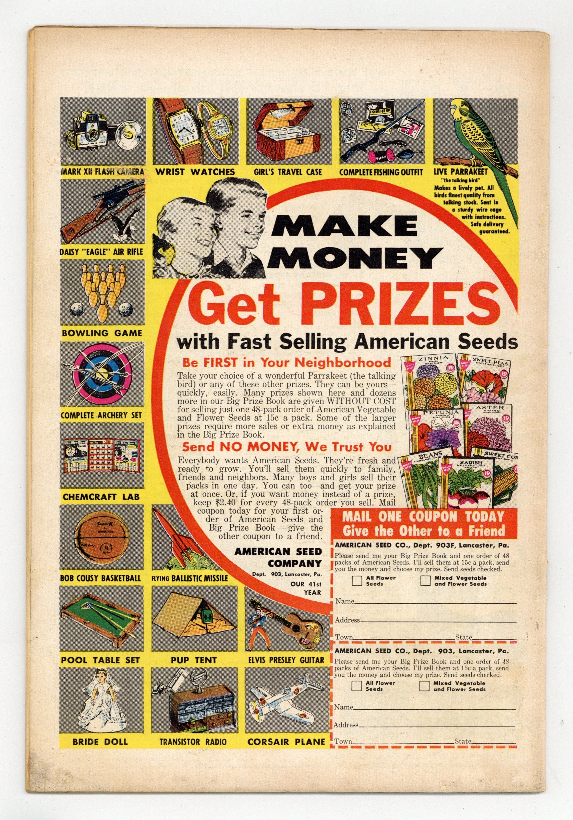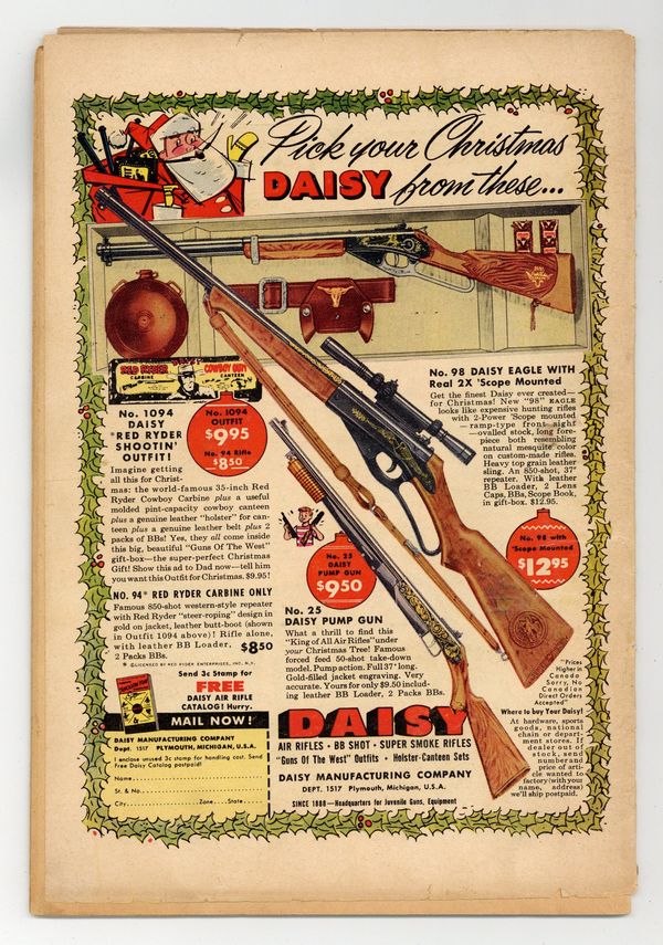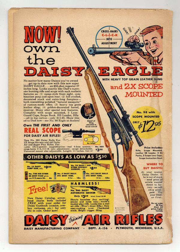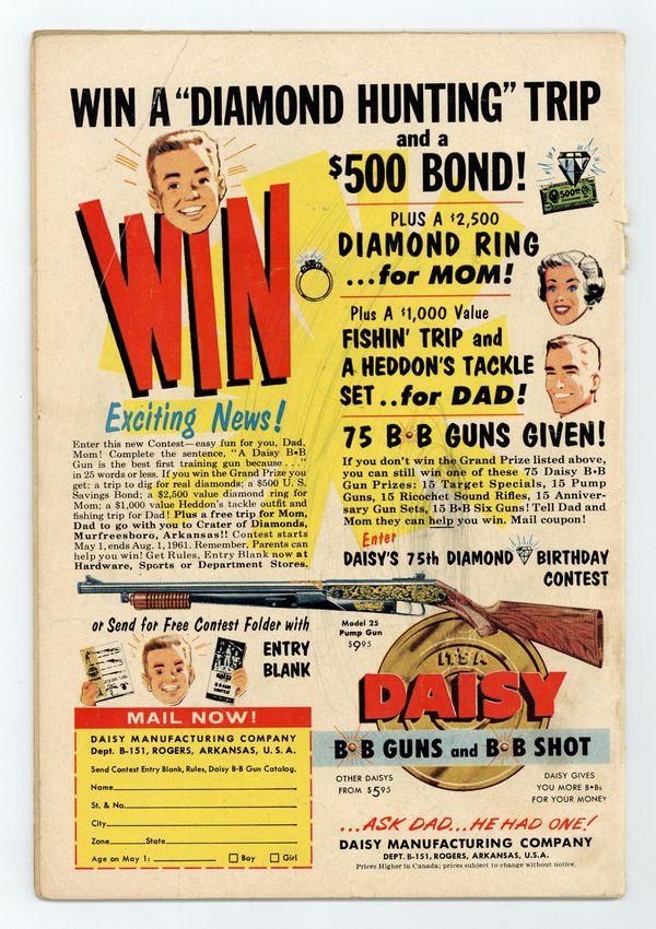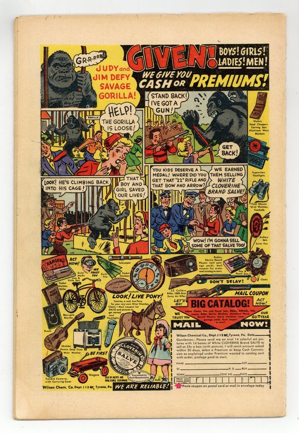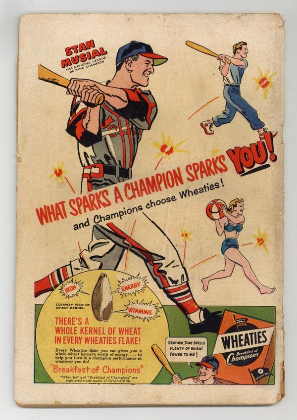 Starts Jan 3 Cover art by Al Plastino. The Two Identities of Superman, pencils by Wayne Boring, inks by Stan Kaye; Superman tries to convince Hollis Shore that he's really Perry White. The Men Who Had to Guard Superman, script by Bill Finger, pencils by Wayne Boring, inks by Stan Kaye; When a dying scientist tells Clark a secret formula, the Secret Service decides they must protect him. Smokey, the Fire-Preventing Bear Comes to the Rescue of Peter Porkchops public service announcement, script by Jack Schiff, art by Otto Feuer. Casey the Cop humor two-pager by Henry Boltinoff. Birth of the Leathernecks, an origin of the U.S. Marines. Superman Fights the Super-Brain, pencils by Wayne Boring, inks by Stan Kaye; The Toyman builds a super computer to plot crimes for him. Stan Musial Wheaties full-page ad. 52 Pages, Full Color. Cover price $0.10.