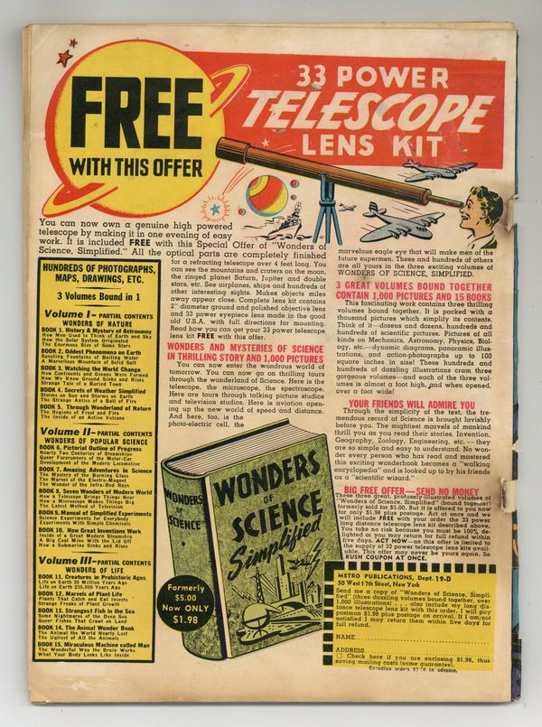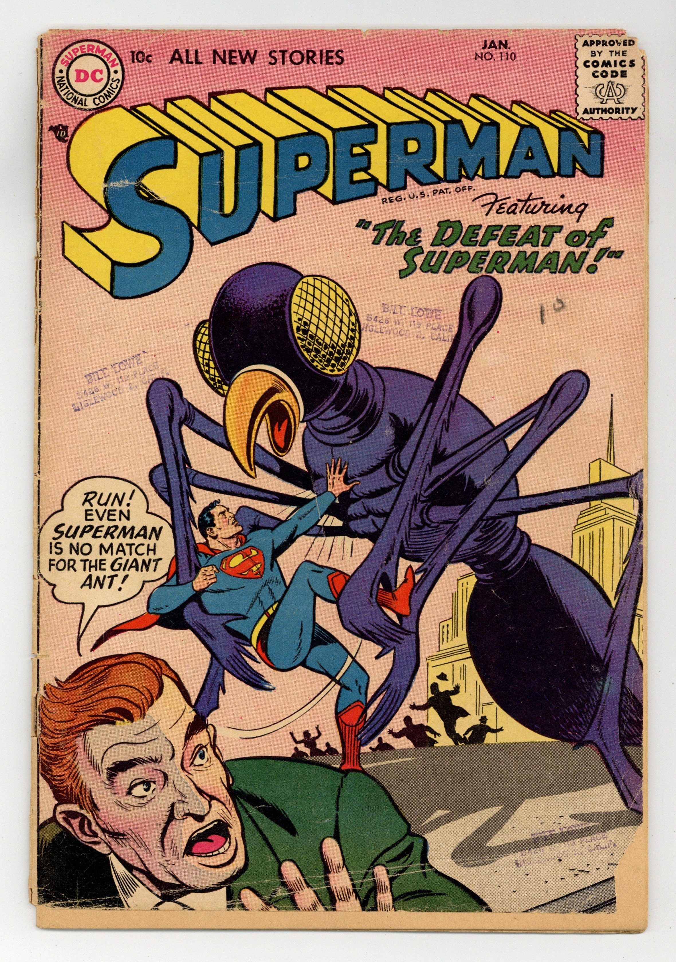Starts Dec 15 Cover art by Al Plastino. The Secret of the Superman Trophy starring Superman, Les Keegan, and Lois Lane, pencils by Wayne Boring, inks by Stan Kaye. The Mystery Superman! starring Superman, Hal, and Lois Lane, pencils by Ruben Moreira, inks by Al Plastino. The Defeat of Superman starring Lex Luthor, script by Bill Finger, pencils by Wayne Boring, inks by Stan Kaye; Superman battles a giant ant. 36 Pages, Full Color. Cover price $0.10.