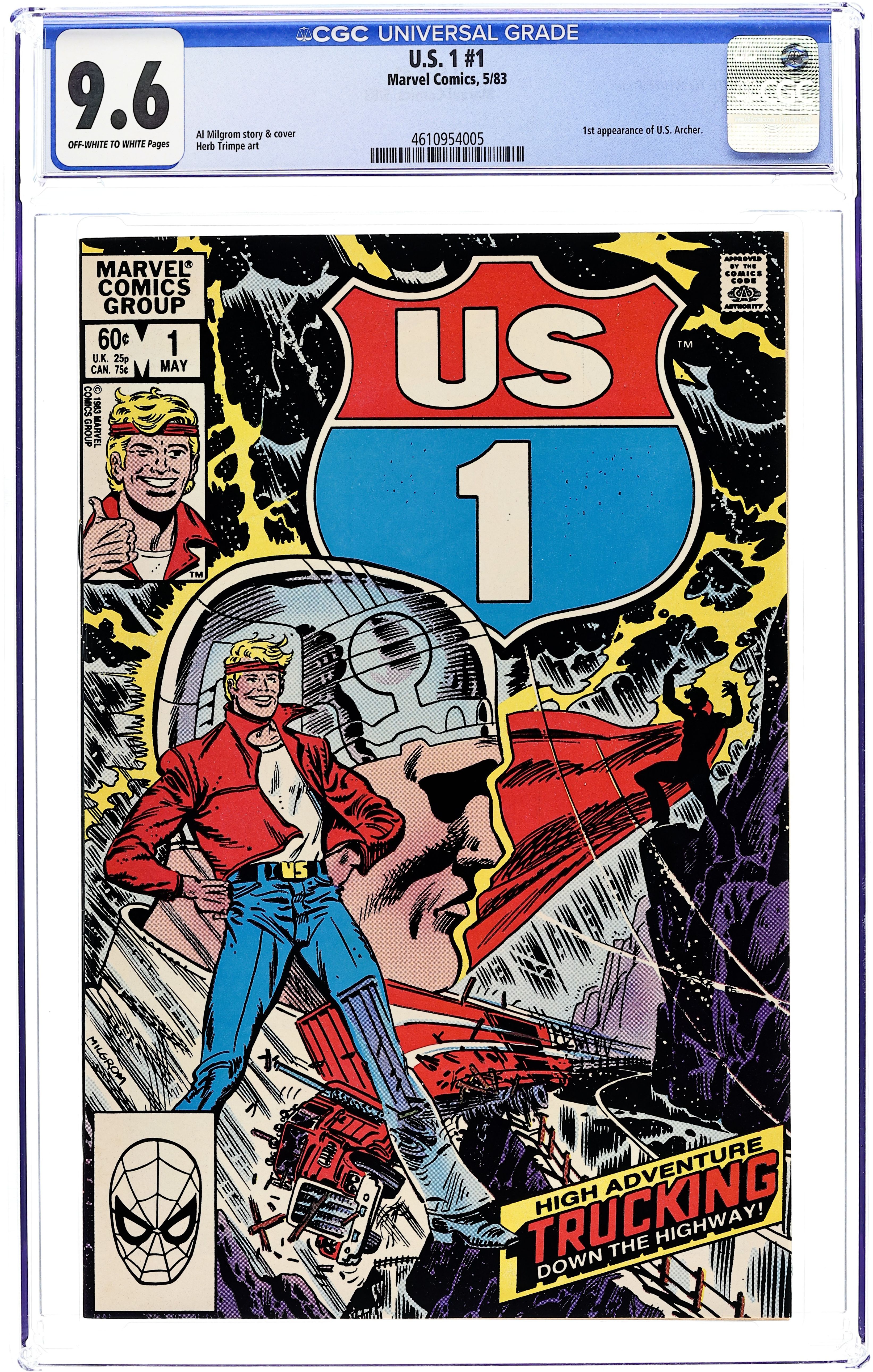 Direct Edition. Story by Al Milgrom. Art by Herb Trimpe. Cover by Al Milgrom. "U.S. 1, Coming At Ya!". 1st appearance U.S. 1 & The Highwayman. Cover price $0.60.