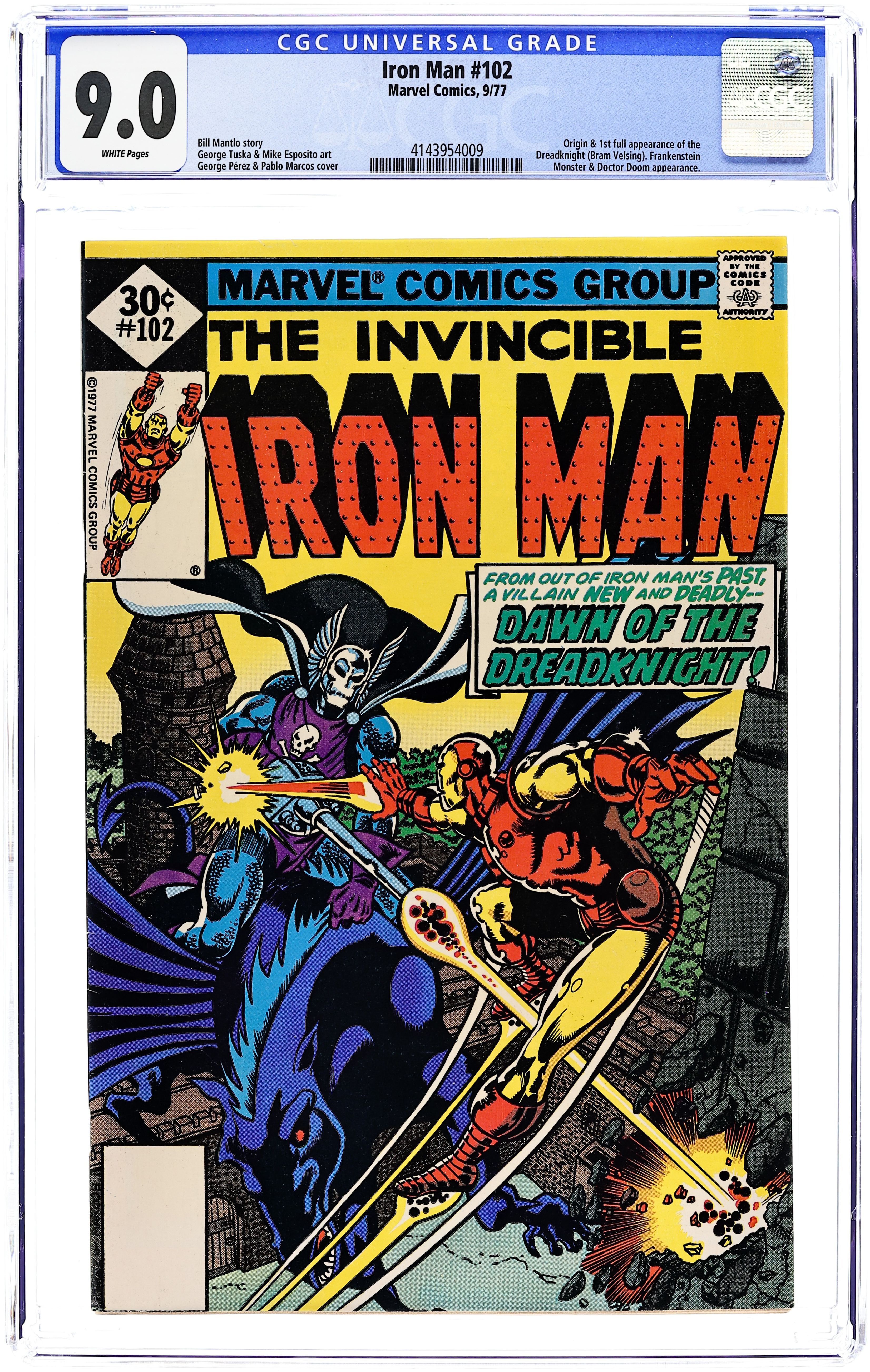 Ends Dec 8 8:40 PM CST Bid History 3 bids Current Bid $7 Your Secret Max Bid If you'd like to bid, please log in or register. Whitman Variant. "The Daughter of Creation!" Part 2 of 2. Guest-starring the Monster of Frankenstein. Story by Bill Mantlo. Art by George Tuska and Mike Esposito. Cover by George Perez. Iron man must contend with the power of the Dreadknight, and he might get a little help from the last place he expected. 32 pages. Cover price $0.30.