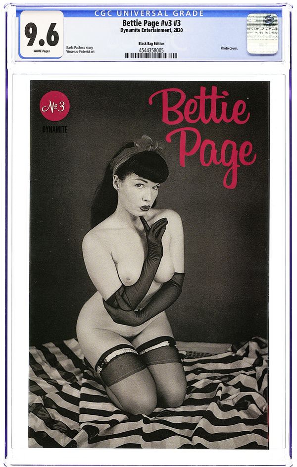 Tags: Bettie PagePublished Oct 2020 by Dynamite Entertainment.Bettie Page (2020 Dynamite) 3L CGC 9.6 Black Bag Variant