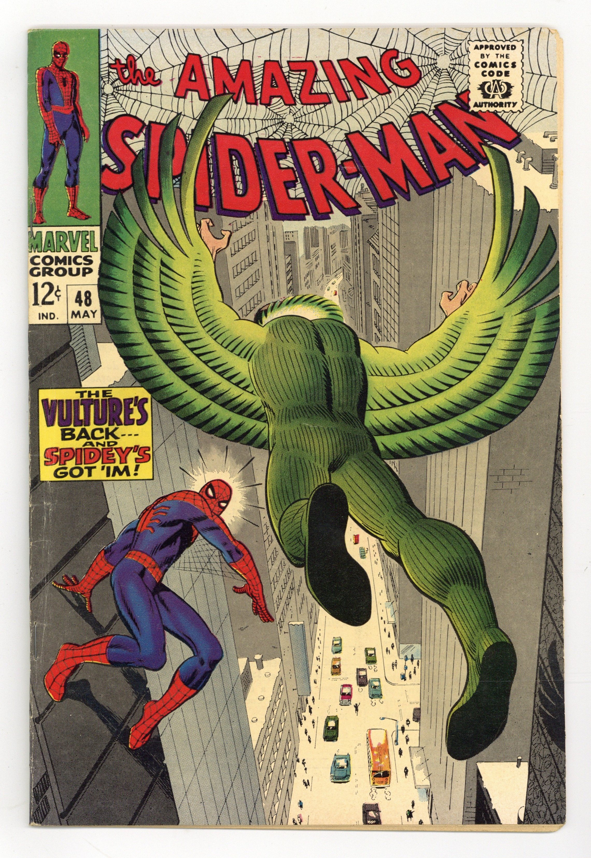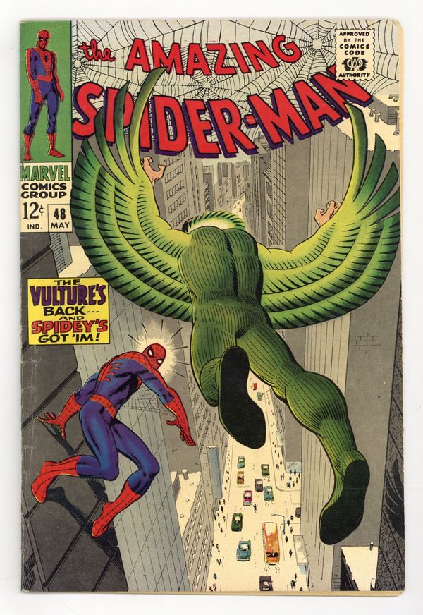 Ends Jan 13 7:05 PM CST Bid History 12 bids Current Bid $101 Your Secret Max Bid If you'd like to bid, please log in or register. Cover art by Steve Ditko. The Return of the Vulture, script by Stan Lee, art by Steve Ditko; Adrian Toomes breaks out of prison and goes on a crime spree, and ends up battling Spider-Man in the skies above New York. Reprinted in Marvel Tales # 4 and # 144. 36 pgs. $0.12. Cover price $0.12.