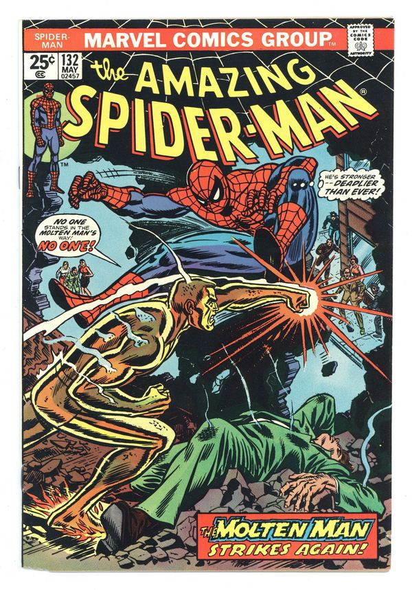 Ends Jan 13 7:05 PM CST Bid History 14 bids Current Bid $155 Your Secret Max Bid If you'd like to bid, please log in or register. Cover art by Steve Ditko. First appearance of Mr. Petty (inventor of the Living Brain) in The Terrible Threat of the Living Brain!, script by Stan Lee, art by Steve Ditko; When two technicians try to steal a computer that is on display at Peter's school, they accidentally turn it into "The Living Brain" that goes wild and must be stopped by Spider-Man. Reprinted in Marvel Tales # 5 and #145. Spider-Man Tackles The Torch!, script by Stan Lee, pencils by Jack Kirby, inks by Steve Ditko; Spider-Man crashes a party at Johnny Storm's girlfriend's place, causing a fight between the Human Torch and Spider-Man that soon escalates to include the rest of the Fantastic Four. Letter to the editor from Buddy Saunders, president of MyComicShop, written to Marvel in his callow youth. 36 pgs. $0.12. Cover price $0.12.