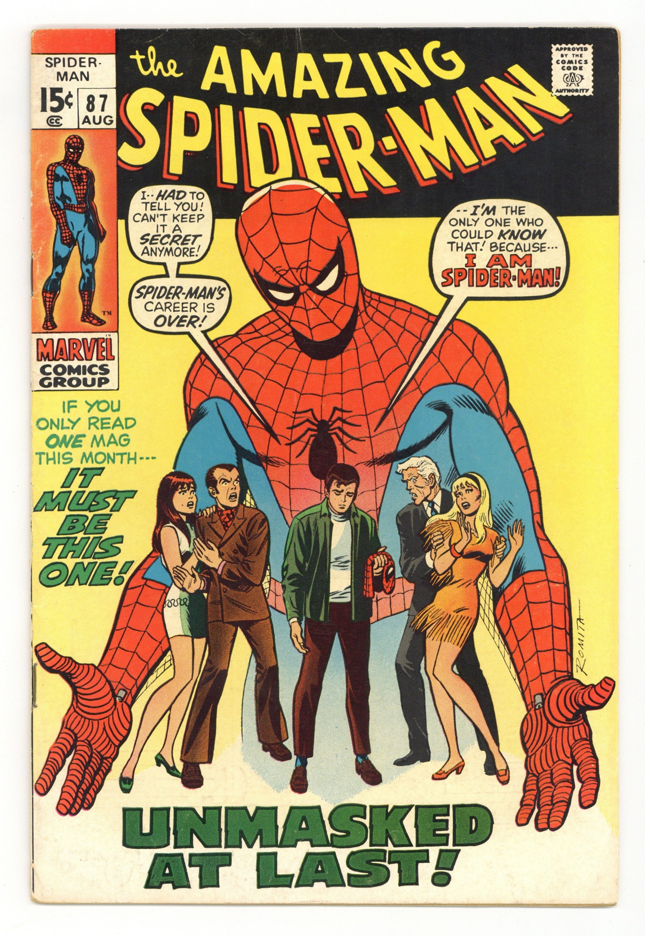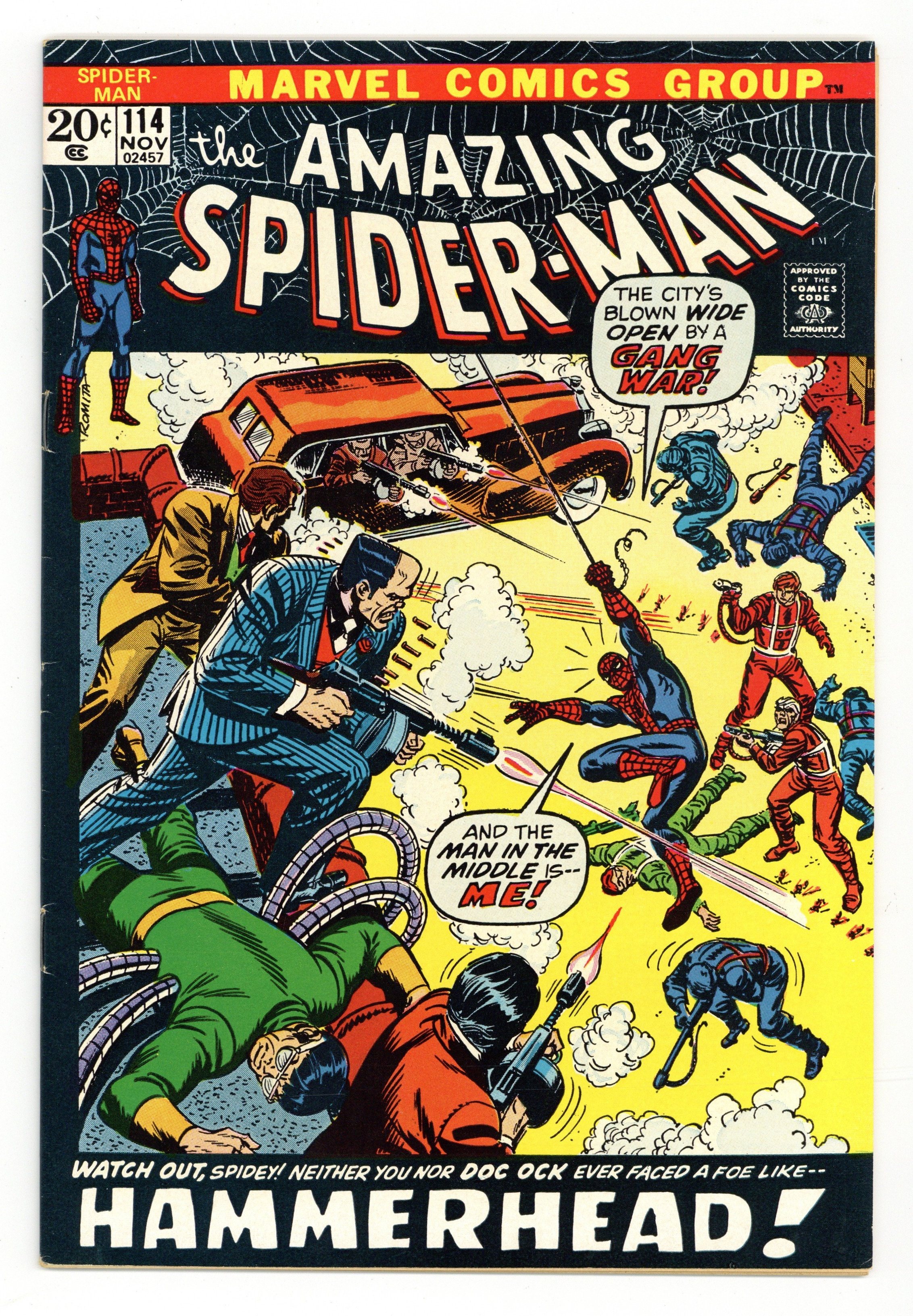Ends Jan 13 7:06 PM CST Bid History 13 bids Current Bid $587 Your Secret Max Bid If you'd like to bid, please log in or register. Cover art by Steve Ditko. Unmasked by Dr. Octopus!, script by Stan Lee, art by Steve Ditko; Peter has the 24 hour flu when Doc Ock captures Betty Brant in hopes of luring Spider-Man into battle; Ock beats the under the weather web-head and unmasks him, but everyone thinks it is just Peter trying to be brave by impersonating Spidey; Once he has recovered, Spider-Man battles through the wild animals Ock has released from the zoo to take on old six-arms himself. Reprinted in Marvel Tales # 149. Letter to the editor from comics artist Dave Cockrum. 36 pgs. $0.12. Cover price $0.12.