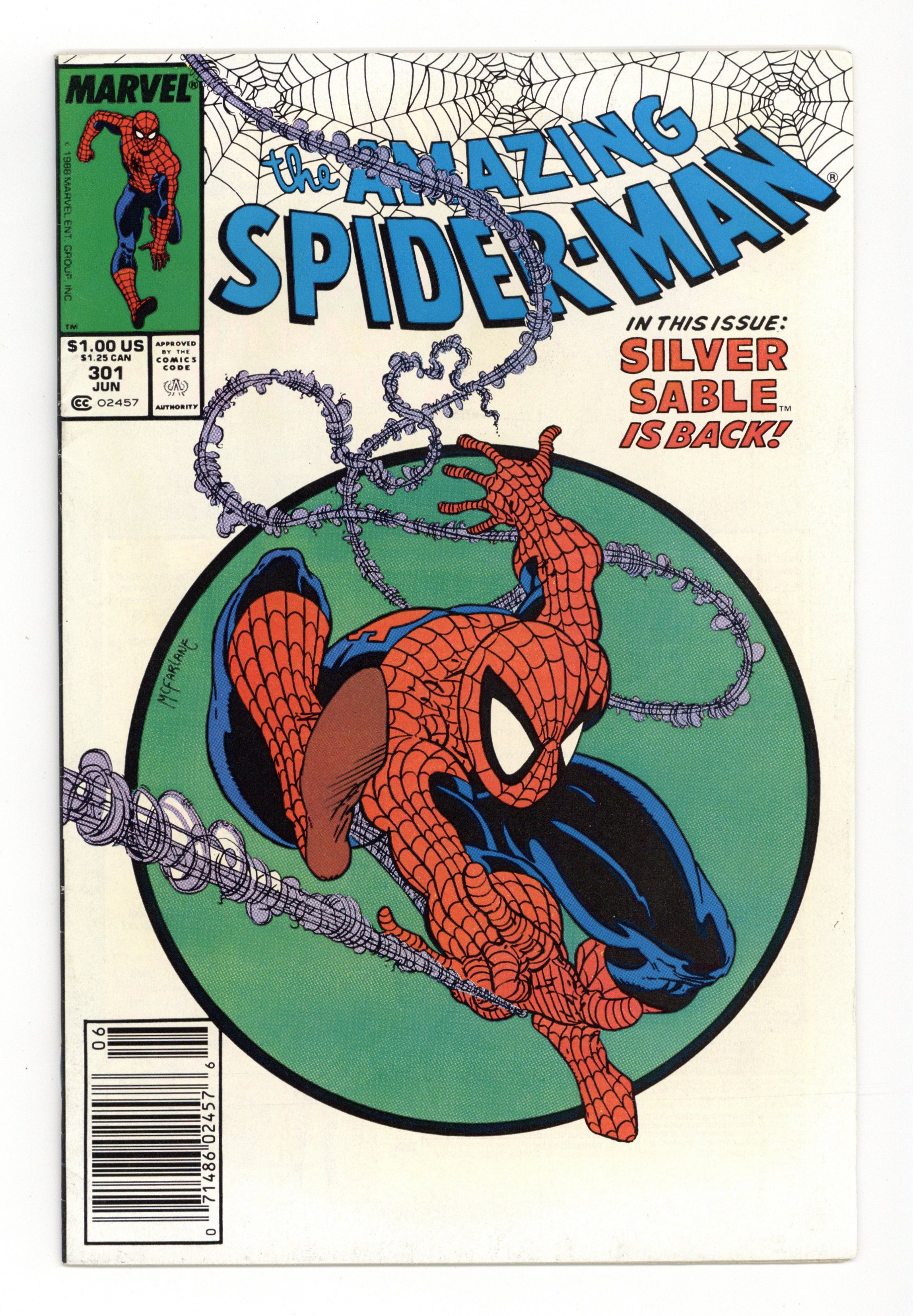 Ends Jan 15 7:33 PM CST Bid History 6 bids Current Bid $30 Your Secret Max Bid If you'd like to bid, please log in or register. Direct Edition. Cover pencils by Erik Larsen, inks by Randy Emberlin. Second appearance of Cletus Kasady (Carnage) in "Gun From the Heart!" Script by David Michelinie, pencils by Mark Bagley, inks by Randy Emberlin; Through Silver Sable (and without his knowledge of who the real boss is), Justin Hammer hires Spidey to take down Cardiac and then hires Boomerang to take down Spidey; Eddie Brock is freed from prison by the Venom symbiote, but as he leaves his cell, a little drip from the costume stays behind to keep Cletus Kasady company; Venom cameo. The letters page has a statement of ownership--average print run 489,589; average paid circulation 334,893. 36 pgs., full color. Cover price $1.00.