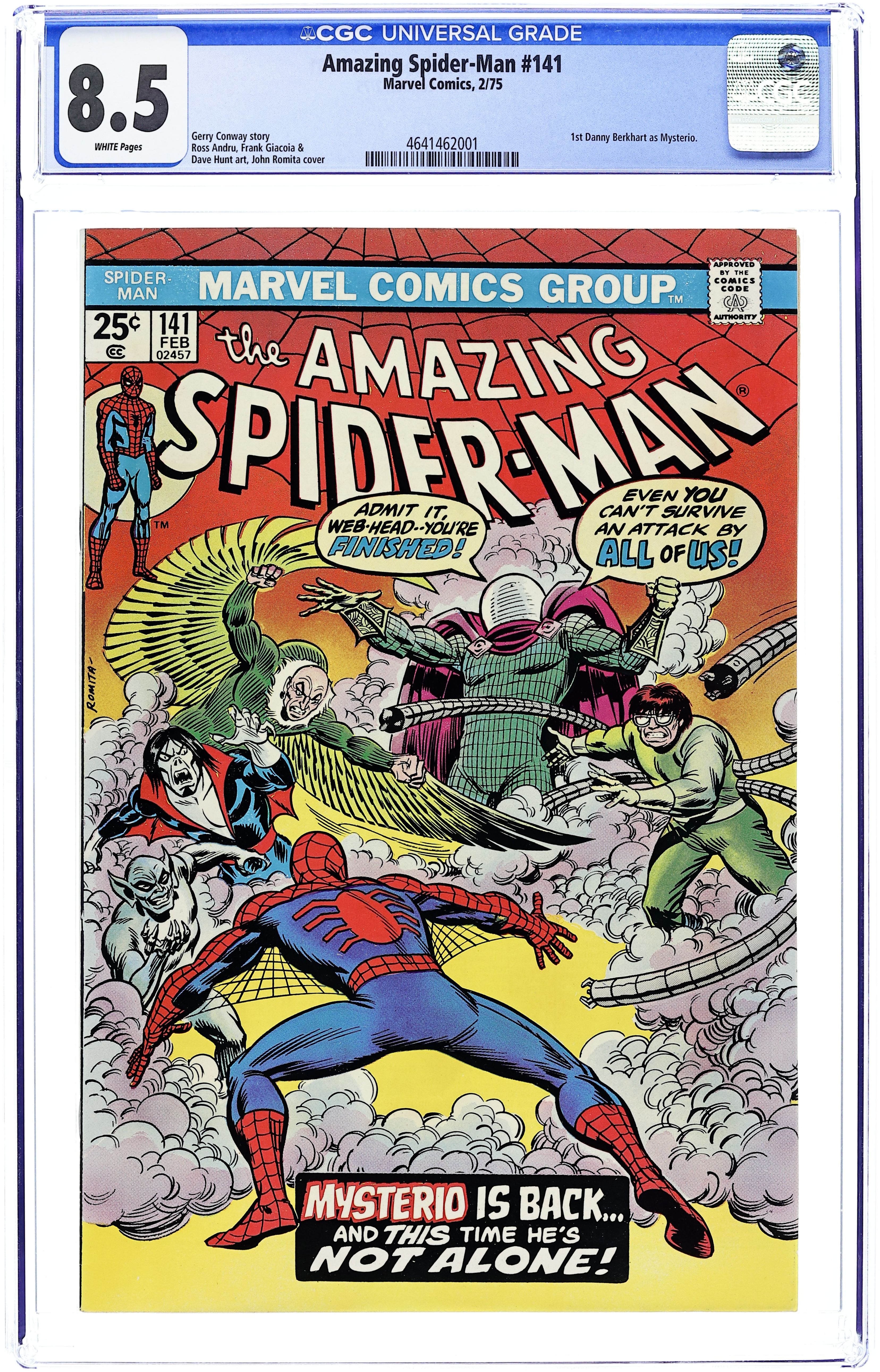 Ends Jan 13 7:07 PM CST Bid History 23 bids Current Bid $560 Your Secret Max Bid If you'd like to bid, please log in or register. Cover art by Steve Ditko. First appearance of Mysterio in The Menace of... Mysterio!, script by Stan Lee, art by Steve Ditko; Mysterio first frames Spider-Man for a crime wave, then challenges him to a battle on top of the Brooklyn Bridge. Reprinted in Marvel Tales # 8 and 151. 36 pages, full color. Cover price $0.12.
