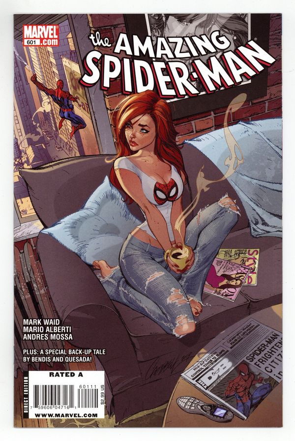 Starts Dec 8 Cover by J. SCOTT CAMPBELL. Written by MARK WAID. Art by MARIO ALBERTI. Prepare for the All-New, All-Deadly: DARK MARY-JANE!! Oops, sorry, that's the rest of Marvel's solicits...Actually, in this issue 'Red-Headed Stranger' begins just after the surprising events of AMAZING SPIDER-MAN #600 with Pete's love life taking a turn for the worse just as his old flame Mary Jane returns to New York City. (FINALLY!! Sheesh. What took us so long?!) Plus: A back-up tale by Brian Michael Bendis & Joe Quesada. 36 pgs. Cover price $2.99.