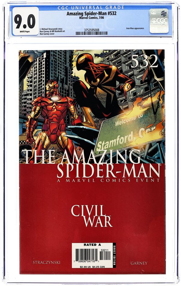 Tags: Civil War (Marvel) (part Tie-In), Marvel Legacy Numbering: Amazing Spider-Man (part 532), Spider-ManAmazing Spider-Man (1998 2nd Series) 532A CGC 9.0 Garney