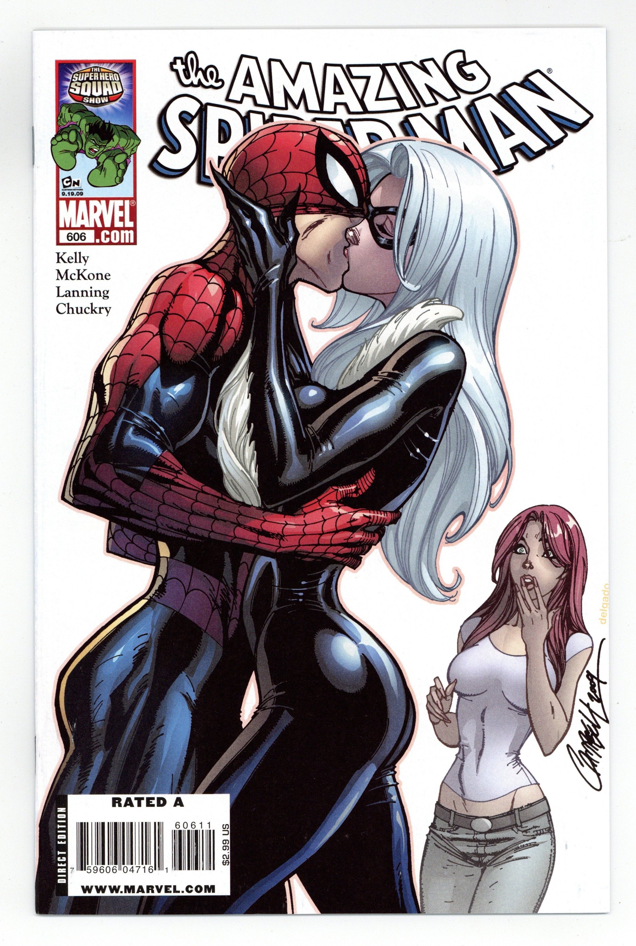 Starts Dec 8 "Long Term Arrangement" Part 1 of 2 - Written by Joe Kelly. Pencils by Mike McKone. Inks by Andy Lanning. Covers by J. Scott Campbell. Look out, Spidey! Hot on the heels of his old girlfriend's trip home, The Black Cat's back (and front!), sexier and more dangerous than ever! The deck is stacked as the one woman that loves Spider-Man more than Peter Parker is up to some devilish shenanigans...and nothing bugs Spidey more than shenanigans! Brace yourself for danger, Spidey! It's gonna be ...umm...sexy? 36 pgs. Cover price $2.99.