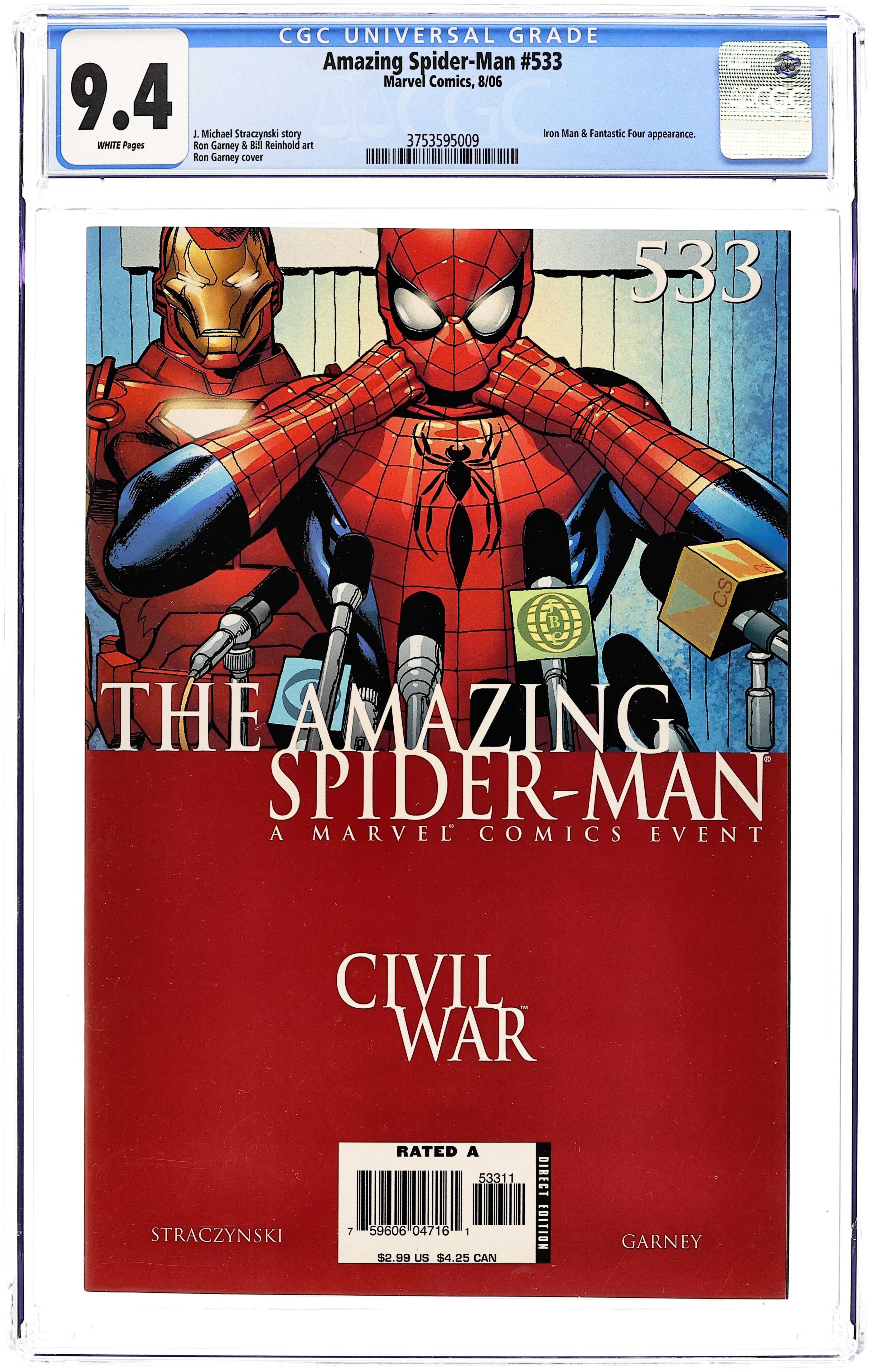 Tags: Civil War (Marvel) (part Tie-In), Marvel Legacy Numbering: Amazing Spider-Man (part 533), Spider-ManAmazing Spider-Man (1998 2nd Series) 533A CGC 9.4 Garney