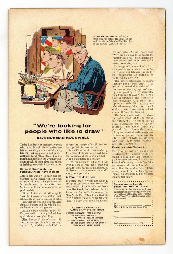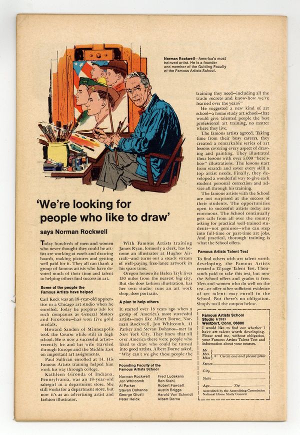 Starts Jan 3 Cover pencils by Jack Kirby, inks by Wally Wood. Among Us Stalk...The Sentinels!, script by Stan Lee, pencils by Jack Kirby (layouts) and Werner Roth [as Jay Gavin] (pencils), inks by Vince Colletta; After their battle with the Juggernaut, Xavier sends the X-Men on vacation; Reading a story in the paper about Dr. Trask and his story on the mutant menace, Professor X calls for a televised debate with the anthropologist; During the broadcast, Trask unveils his Sentinels, robots who were built to capture and nullify mutants, but things quickly get out of hand as the Sentinels proclaim themselves superior to puny humans and prepare to take over; Xavier calls his X-Men to help and they return to battle the Sentinels; When one of their number falls, the giant robots capture Trask and return to their base; The X-Men follow and find a hidden complex complete with devastating weaponry aimed directly at them; 1st appearance of the Sentinels. 36 pgs. $0.12. Cover price $0.12.