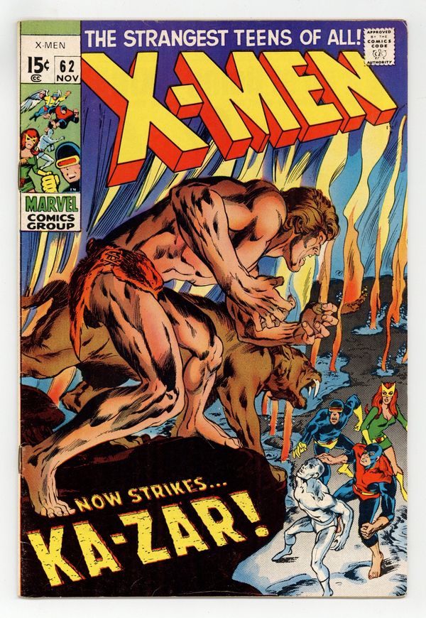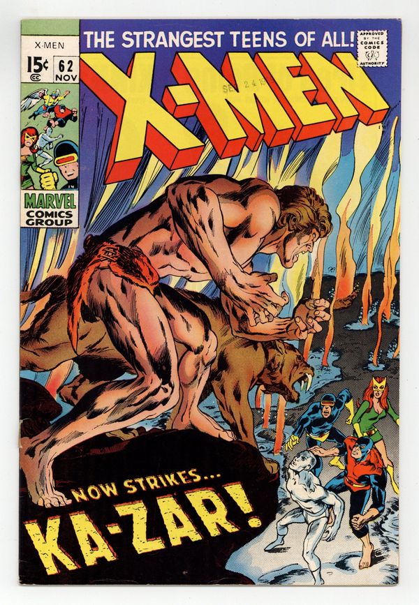Ends Mar 2 9:49 PM CST Bid History 5 bids Current Bid $71 Your Secret Max Bid If you'd like to bid, please log in or register. Cover pencils by Jack Kirby, inks by Chic Stone. The Coming of Ka-Zar, script by Stan Lee, pencils by Jack Kirby, inks by Chic Stone; Even though he is not a mutant, Xavier allows the X-Men to travel to Antarctica and enter the Savage Land to investigate the noble savage, Ka-Zar; They end up having to save Jean and Warren from being sacrificed by the savage Swamp Men; 1st Silver Age Ka-Zar. (The original Ka-Zar appeared in Marvel Comics #1 and Marvel Mystery Comics between 1939 andf 1942.) 36 pgs. $0.12. Cover price $0.12.