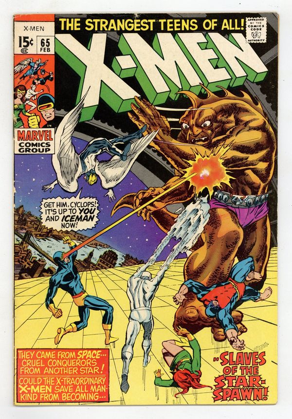 Ends Mar 2 9:49 PM CST Bid History 2 bids Current Bid $10 Your Secret Max Bid If you'd like to bid, please log in or register. First appearance of Grotesk. Cover pencils by Don Heck, inks by George Tuska. Now Strikes...the Sub-Human!, script by Roy Thomas, pencils by Don Heck, inks by George Tuska; the X-Men battle the Grotesk, the last survivor of the Sub-Humans. The Living Diamond!--The Origins of the Uncanny X-Men, script by Roy Thomas, pencils by Werner Roth, inks by John Verpoorten; Jack O'Diamonds wants Scott Summers to help him battle Professor Xavier; Jack O'Diamonds turns himself into a Living Diamond. 36 pgs. $0.12. Cover price $0.12.