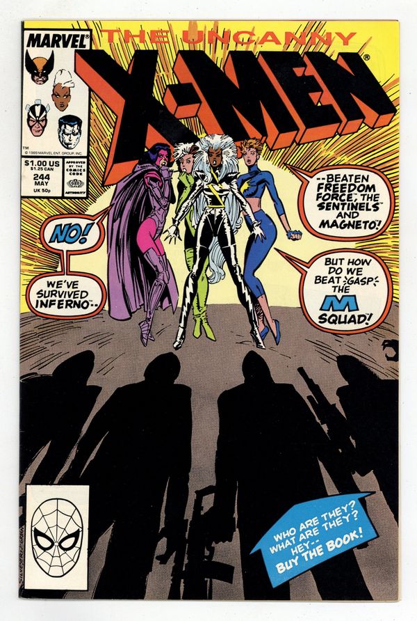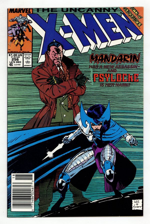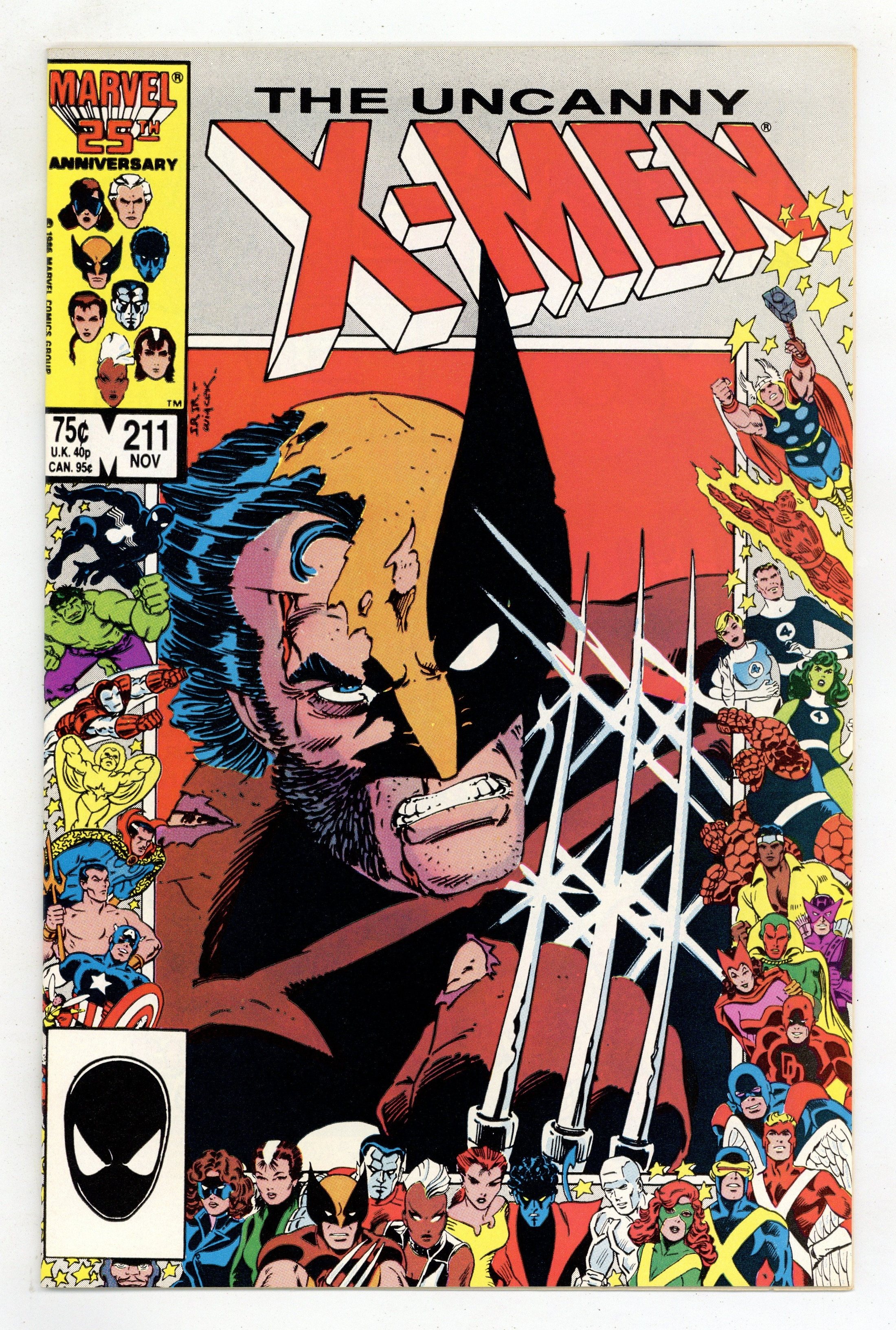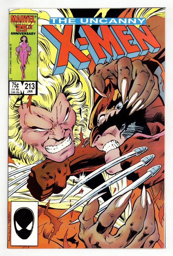 Starts Dec 15 1st Printing. Direct Edition. "Madripoor Knights!" Guest-starring Captain America and Black Widow. Story by Chris Claremont. Art by Jim Lee and Scott Williams. Cover by Jim Lee. In this classic flashback tale, during the second World War, a mysterious man by the name of Logan and a rookie Sentinel of Liberty must team up against the deadly Hand to save the life of a young girl. Meanwhile in the present, Wolverine, Jubilee, Psylocke, and Black Widow finish a caper that began nearly fifty years earlier. NOTE: JC Penney reprint exists with 30th Anniversary Spider-Man in UPC Box. 36 pgs. Cover price $1.00.