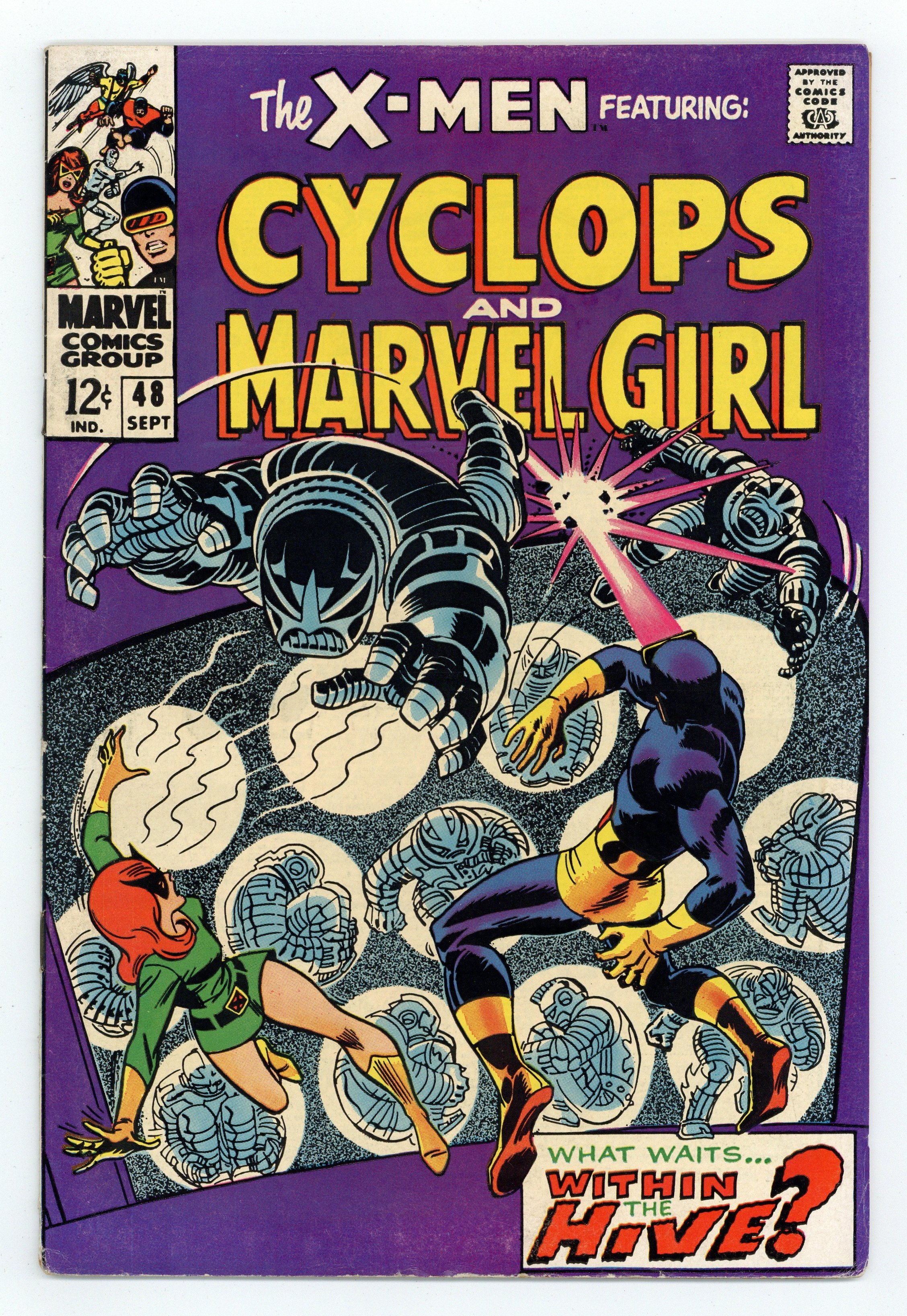 Starts Apr 4 Cover pencils by Jack Kirby, inks by Wally Wood. Among Us Stalk...The Sentinels!, script by Stan Lee, pencils by Jack Kirby (layouts) and Werner Roth [as Jay Gavin] (pencils), inks by Vince Colletta; After their battle with the Juggernaut, Xavier sends the X-Men on vacation; Reading a story in the paper about Dr. Trask and his story on the mutant menace, Professor X calls for a televised debate with the anthropologist; During the broadcast, Trask unveils his Sentinels, robots who were built to capture and nullify mutants, but things quickly get out of hand as the Sentinels proclaim themselves superior to puny humans and prepare to take over; Xavier calls his X-Men to help and they return to battle the Sentinels; When one of their number falls, the giant robots capture Trask and return to their base; The X-Men follow and find a hidden complex complete with devastating weaponry aimed directly at them; 1st appearance of the Sentinels. 36 pgs. $0.12. Cover price $0.12.