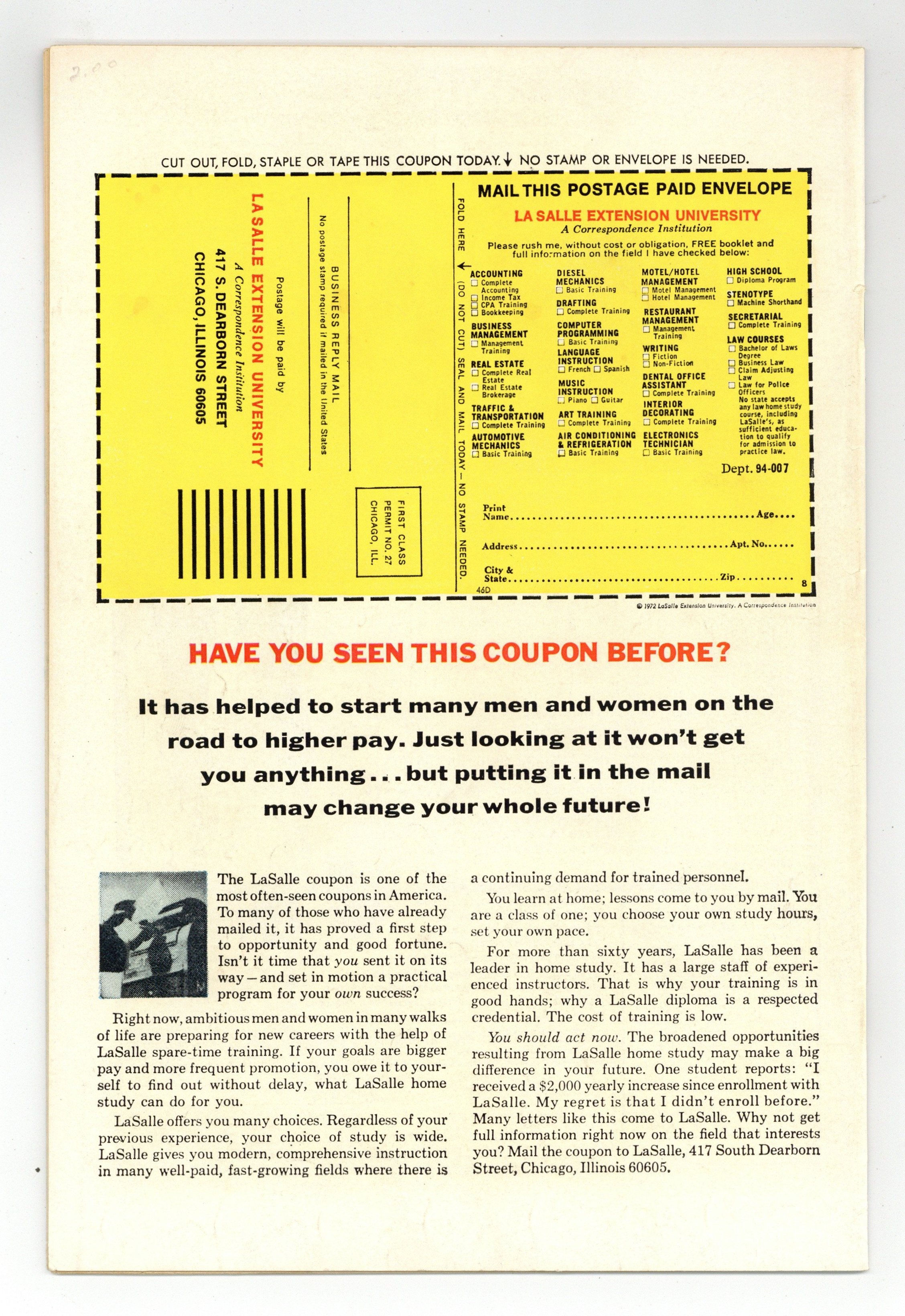 Starts Dec 15 Cover pencils by Jack Kirby, inks by Chic Stone. Unus, the Untouchable!, script by Stan Lee, pencils by Jack Kirby, inks by Chic Stone; After being attacked by a mutant hating crowd following his heroic rescue of a young boy, Beast gets fed up with protecting a humanity that fears and hates him and quits the X-Men; He becomes a professional wrestler but meets his match when he battles Unus, a mutant who cannot be touched; Unus is trying to leave show biz and join Magneto's Brotherhood so he takes on the X-Men as an initiation; The X-Men barely fend him off and, returning home, they find the Beast has constructed a machine that will actually increase Unus' powers; Thinking him a traitor, the X-Men try to prevent Hank from using the machine, but, once Unus has been zapped and powered up, he finds that he cannot even eat without the food being repelled out of his hands; Beast returns him to his former power level but with the promise that Unus will steer clear of Magneto. The Beast Special Pin-Up Page, pencils by Jack Kirby, inks by Chic Stone. 36 pgs. $0.12. Cover price $0.12.