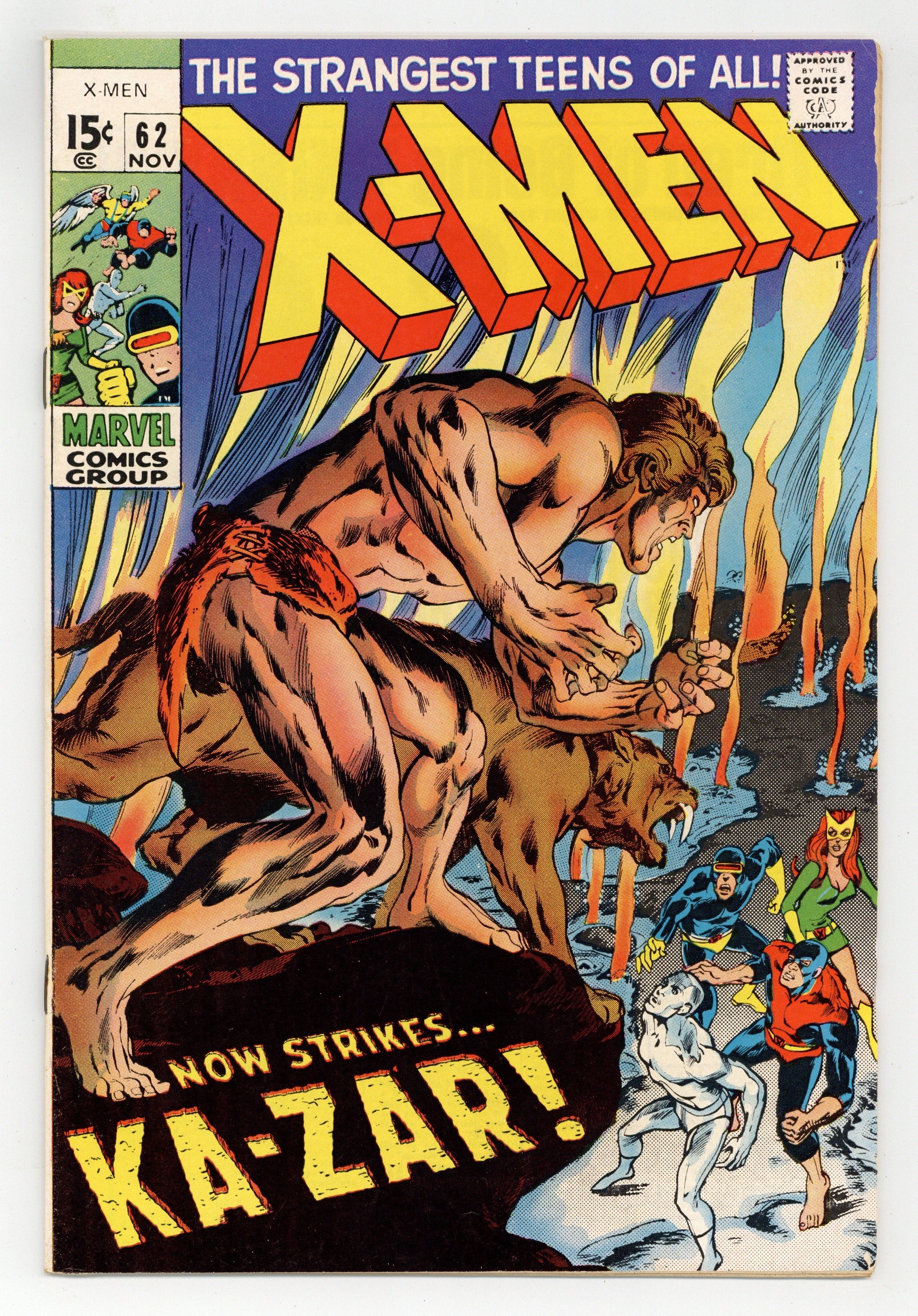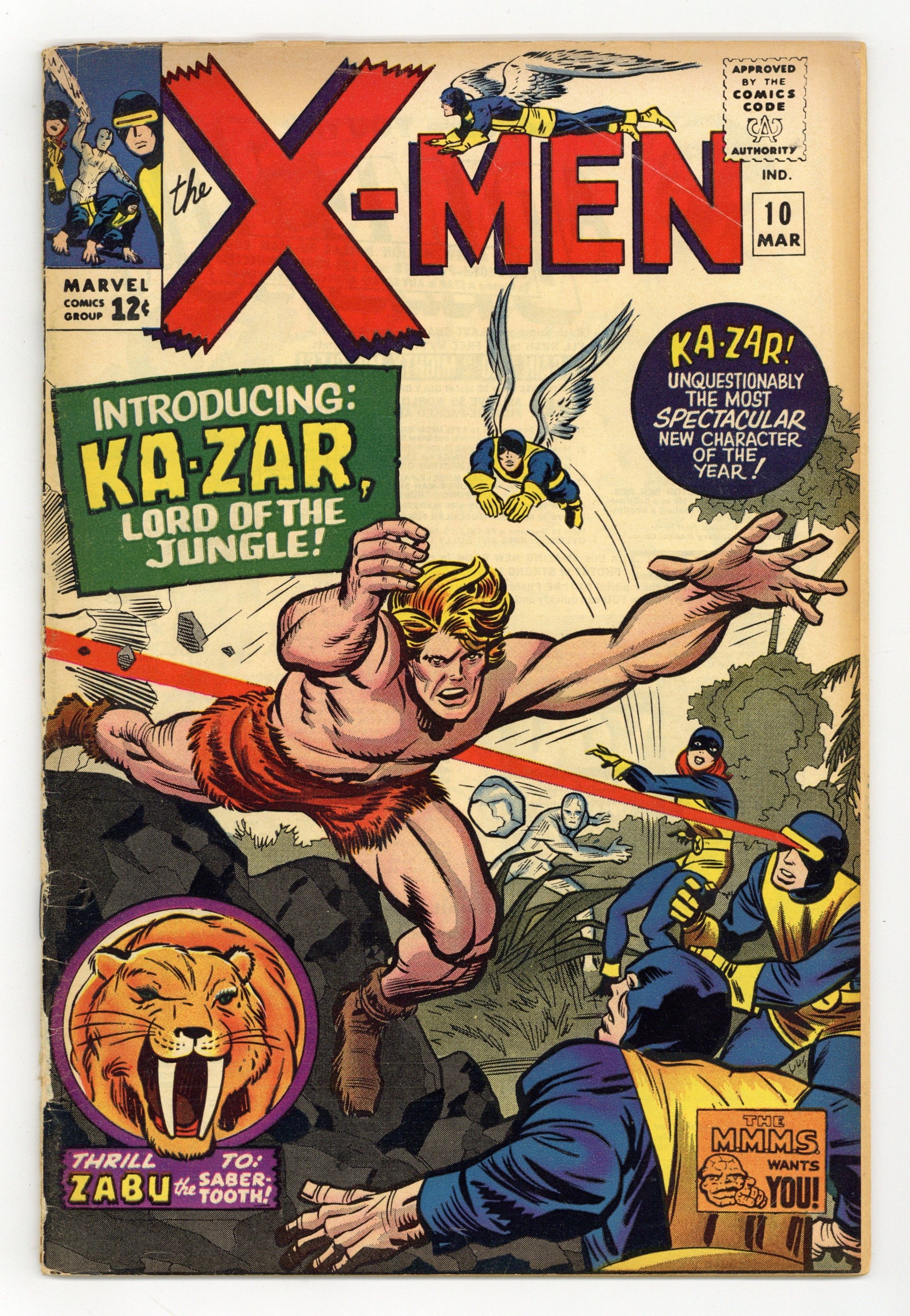 Ends Dec 8 9:50 PM CST Bid History 4 bids Current Bid $27 Your Secret Max Bid If you'd like to bid, please log in or register. Cover pencils by Jack Kirby, inks by Chic Stone. The Coming of Ka-Zar, script by Stan Lee, pencils by Jack Kirby, inks by Chic Stone; Even though he is not a mutant, Xavier allows the X-Men to travel to Antarctica and enter the Savage Land to investigate the noble savage, Ka-Zar; They end up having to save Jean and Warren from being sacrificed by the savage Swamp Men; 1st Silver Age Ka-Zar. (The original Ka-Zar appeared in Marvel Comics #1 and Marvel Mystery Comics between 1939 andf 1942.) 36 pgs. $0.12. Cover price $0.12.