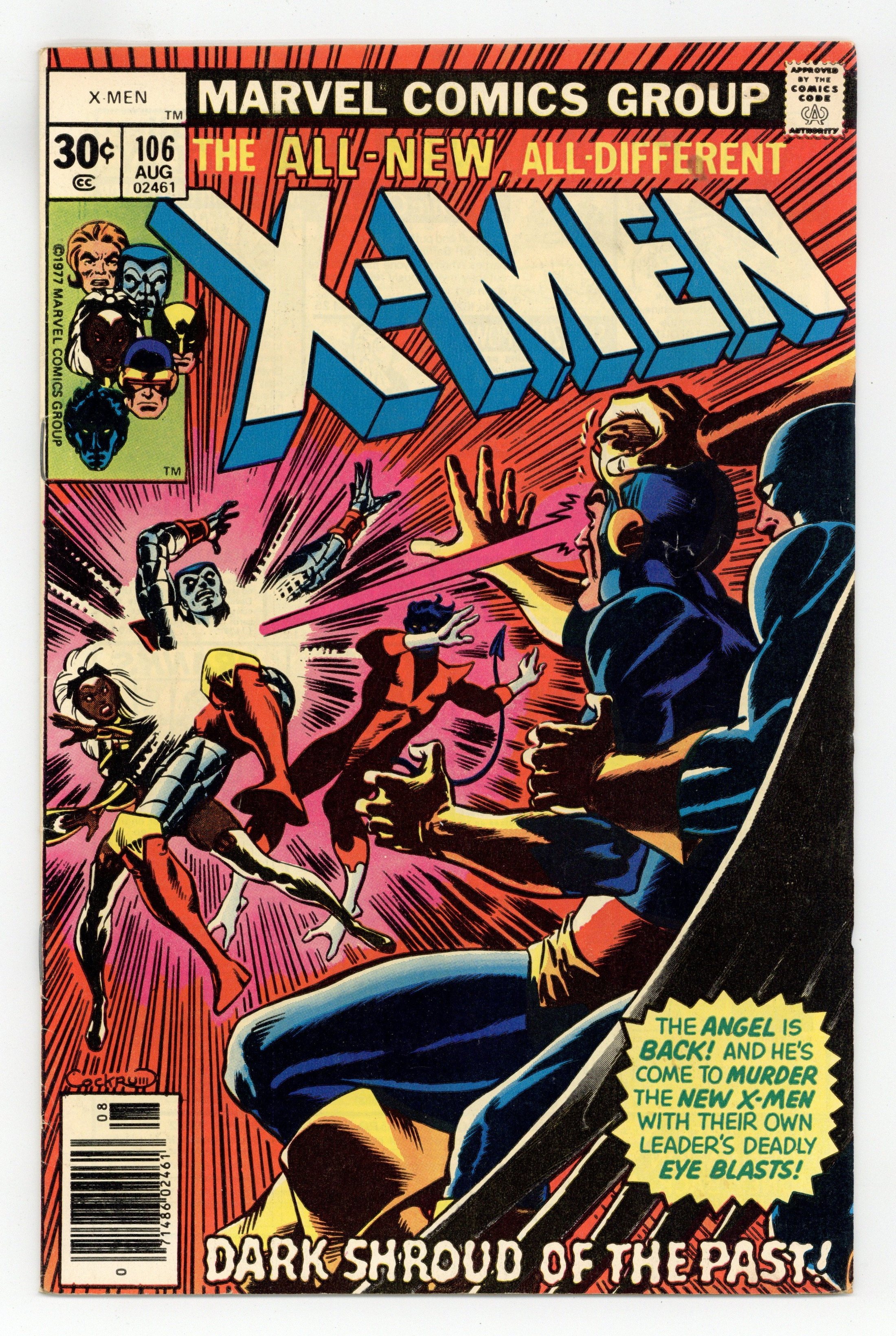 Ends Apr 15 8:45 PM CST Bid History 12 bids Current Bid $105 Your Secret Max Bid If you'd like to bid, please log in or register. Cover pencils by Jack Kirby, inks by Dick Ayers. ...And None Shall Survive!, script by Stan Lee, pencils by Jack Kirby (p. 1 & layouts, pp. 2–20) and Werner Roth [as Jay Gavin] (pp. 2–20), inks by Dick Ayers; In the aftermath of their battle with the Sentinels, Hank, Bobby and Scott are taken to the hospital with injuries; Iceman is delirious in a coma but his companions recover quickly; When Warren's parents call and say they are dropping by for a visit, Angel flies back to the mansion where he is attacked by a mysterious stranger; Xavier and Cyclops, worried with no word from Angel, also return home and are attacked; Beast and Jean are the last to show up and are also taken down; As Warren's parents arrive at the mansion, they are greeted by Magneto. 36 pgs. $0.12. Cover price $0.12.