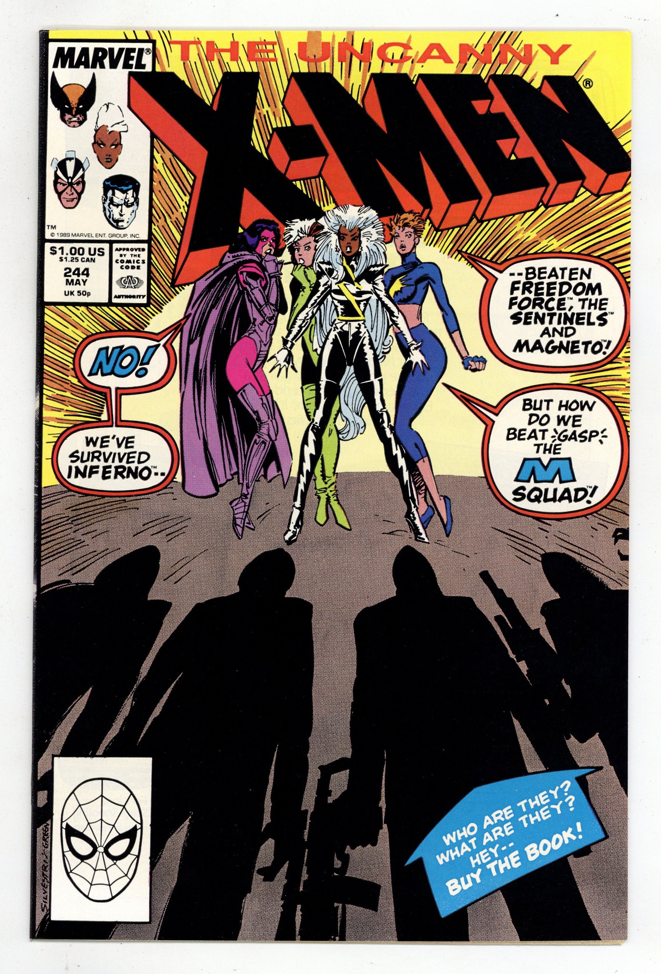 Starts May 4 Direct Edition. Acts of Vengeance: Part 1 of 3. "The Key that Breaks the Locke!" Story by Chris Claremont. Art and cover by Jim Lee and Scott Williams. A cabal made-up of some of Marvel's most dangerous villains has gathered together to pull their resources and finally destroy the heroes who oppose them. This inner circle consists of Doctor Doom, Magneto, the Kingpin, Wizard, Red Skull, the Mandarin, and a mysterious benefactor. Their plan is to surprise their enemies with foes whom they've never faced. In this issue, Iron Man's arch nemesis the Mandarin takes on a new apprentice - Lady Mandarin! The X-Men know her as Psylocke. NOTE: 1st appearance of the ninja Psylocke. 36 pgs. Cover price $1.00.