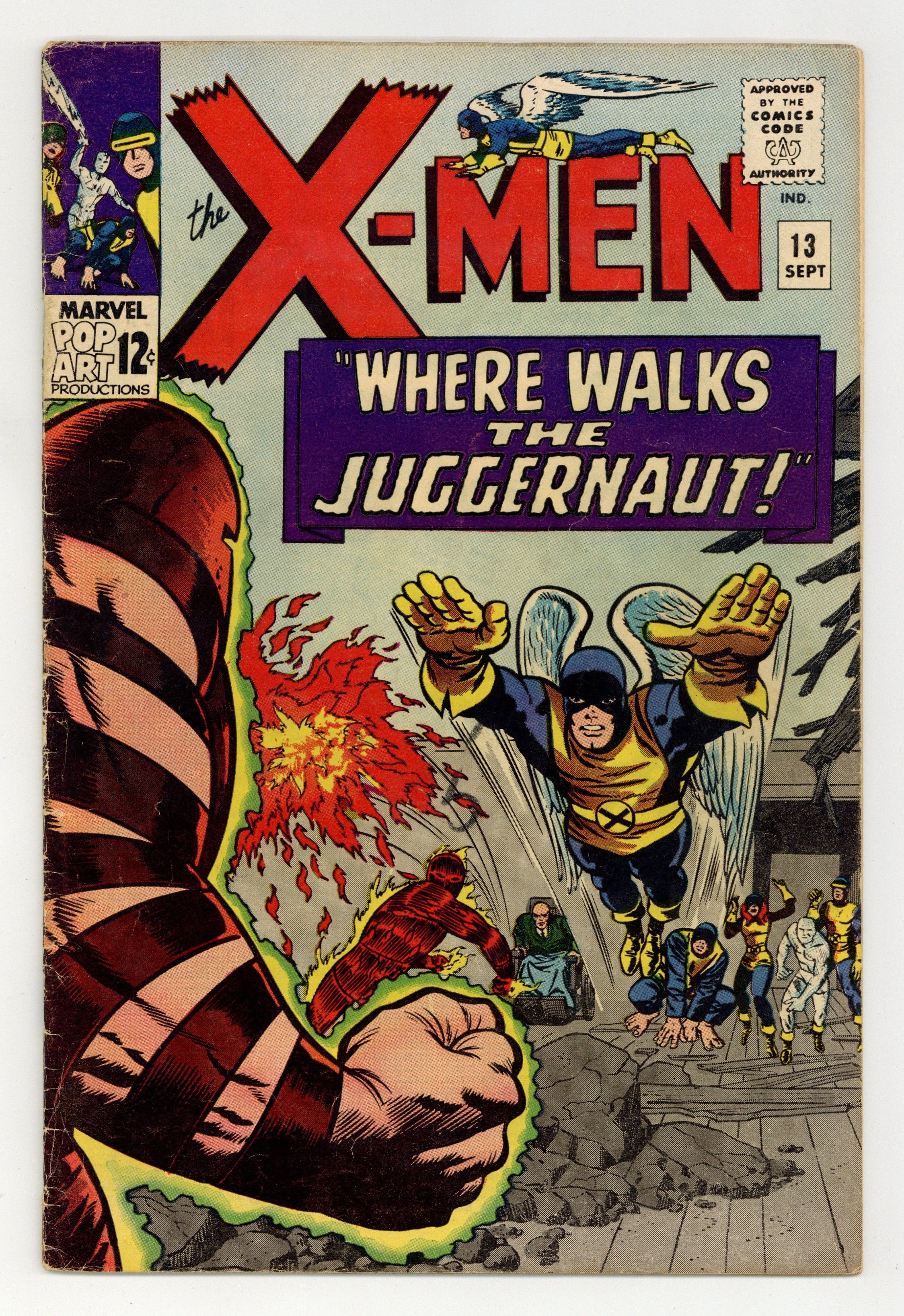 Starts Apr 4 Cover pencils by Jack Kirby, inks by Joe Sinnott. Where Walks the Juggernaut!, script by Stan Lee, pencils by Jack Kirby (layouts) and Werner Roth [as Jay Gavin], inks by Joe Sinnott; Juggernaut has invaded the mansion and the X-Men struggle to take down Xavier's unstoppable half-brother; Human Torch lends a hand and Professor X is able to bring his brother down. 36 pgs. $0.12. Cover price $0.12.