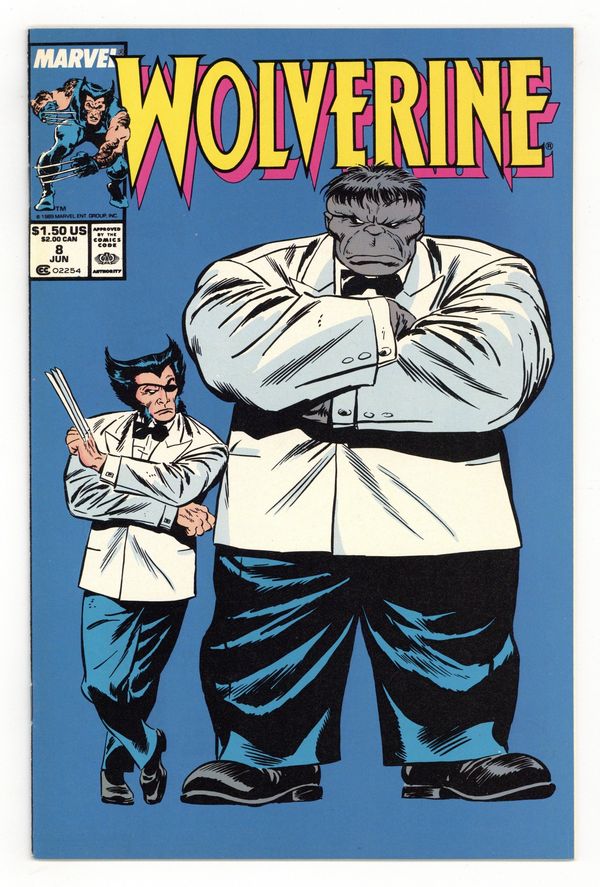 Starts Dec 8 Direct Edition. Part 2 of 2 - "If It Ain't Broke...!" Guest-starring the Incredible Hulk. Written by Chris Claremont. Art by John Buscema . In a humorous turn of events, using the Hulk's brute strength to do his dirty work for him, Wolverine tricks the Grey Goliath into trashing Coy's slave ring and cocaine operation. Rob Liefeld art on back cover. Cover price $1.50.