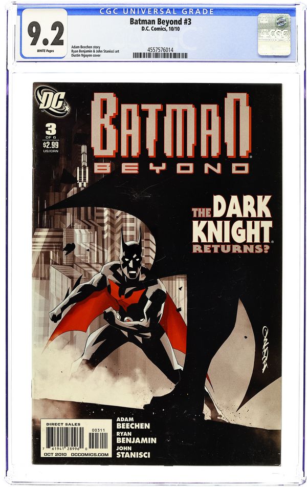 Second printing cover by DUSTIN NGUYEN Written by ADAM BEECHEN ? Art by RYAN BENJAMIN Terry McGinnis - the Batman of the future - and an elderly Bruce Wayne - the original Batman - are the sworn protectors of Neo-Gotham. But when someone targets The Dark Knight's old foes, the new Batman must begin a case that reaches back into Bruce Wayne's past and puts Terry's future directly in danger! Don't miss the long-awaited return of the popular Batman Beyond franchise in this 6-issue adventure from Emmy Award-nominated animation writer Adam Beechen (Batman: The Brave and the Bold) and artist Ryan Benjamin (BATMAN & THE OUTSIDERS). And be sure to check out the SUPERMAN/BATMAN ANNUAL #4 from writer Paul Levitz and artist Renato Guedes starring the Batman Beyond characters! Cover price $2.99.
