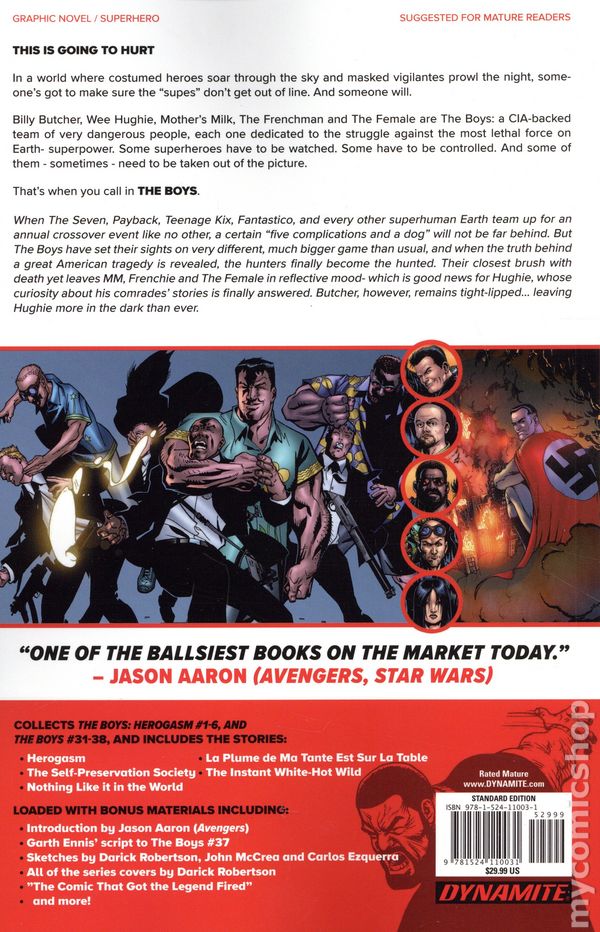 Loaded with bonus materials including: Introduction by Brian K. Vaughan; Garth Ennis' script to Boys (2006-2012) #17; sketches by Darick Robertson and John Higgins; all of the series covers by Darick Robertson; and all alternate covers by John Cassaday, Jim Lee and more.