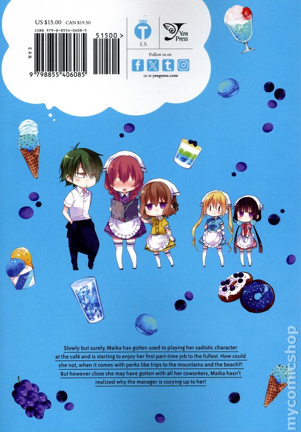 Volume 2 - 1st printing. Story and art by Miyuki Nakayama. Translated by Sheldon Drzka. Maika has gradually gotten used to playing her sadistic character at the cafe and is starting to enjoy her first part-time job to the fullest. How could she not, when it comes with perks like trips to the mountains and the beach! But however close she may have gotten with all her coworkers, Maika seem to be a bit slow in catching on that the manager might have ulterior motives for cozying up to his favorite new waitress! Softcover, 5 3/4-in. x 8 1/4-in., 120 pages, B&W. Teen Cover price $15.00.