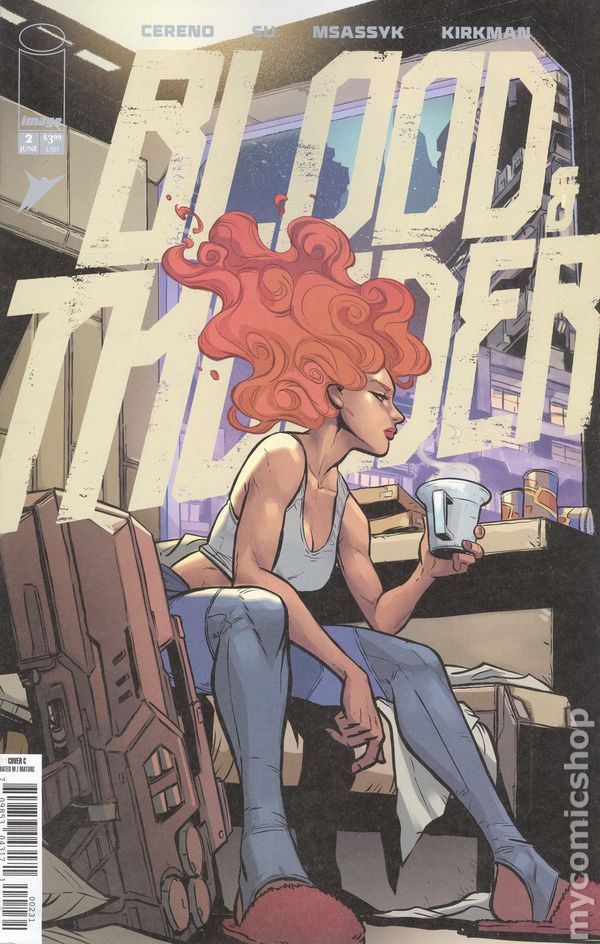 2nd Printing. Cover A. Written by Benito Cereno. Art by E.J. Su, Msassyk. Cover by Arthur Adams, Tanya Lehoux. SERIES PREMIERE Bounty hunter Akeldama Blood Bledsoe and her cantankerous talking gun Thunder are the best out there at bringing in the bad guys. However, when the galaxys most dangerous criminal breaks out of prison, Bloods hunt delivers her down a path that will unlock secrets about her past, present, and future...and thats when things get REALLY BAD. The team of BENITO CERENO, E.J. SU (TECH JACKET), and MICHELE MSASSYK ASSARASAKORN, in partnership with visionary creator** ROBERT KIRKMAN** (INVINCIBLE, THE WALKING DEAD), present an all-new action epic set in the near future where Earth has integrated alien species into a new society—meaning theres a whole new set of rules...and a whole load of new crimes to solve. 28 pages, full color. Rated M Cover price $3.99.