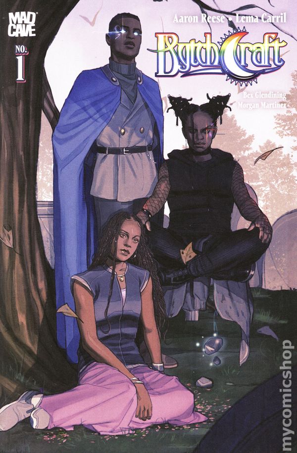 Written by Aaron Reese. Art by Lema Carril. Cover by A.L. Kaplan. Set against the backdrop of modern-day New York City during a seemingly permanent supernatural eclipse, Bytchcraft follows a queer coven bound by magic and blood, each bringing their own flair to the craft: a pretentious oracle who speaks with gods, an emo necromancer with a forked tongue, and a nature witch with the soul of a fairy tale princess. Under the guidance of their enigmatic guardian MTHR, the coven discovers they're at the center of an ancient prophecy, and all wytchkind hangs in the balance! 28 pages, full color. Rated T+ Cover price $4.99.