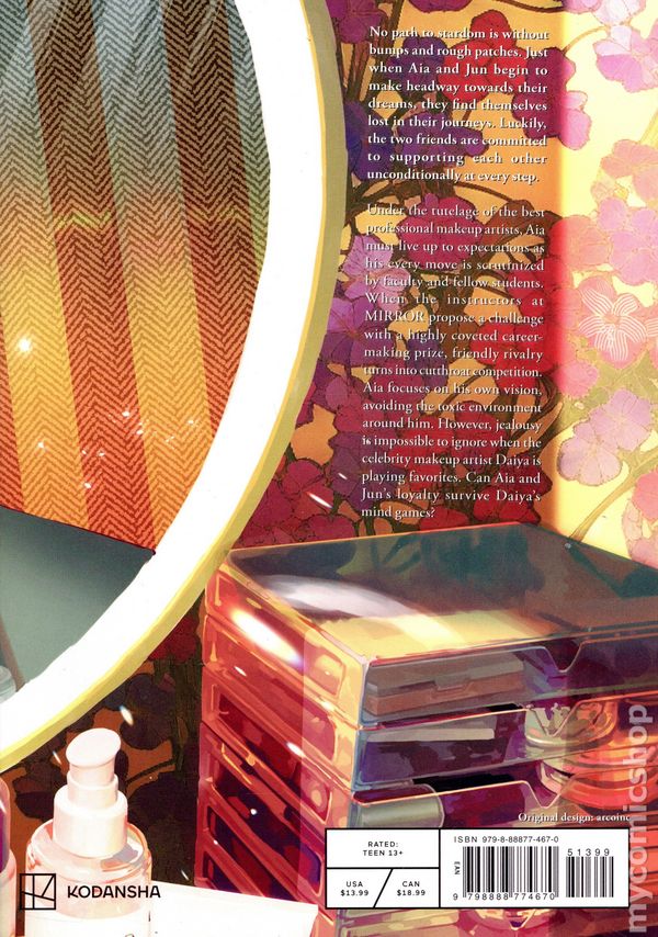 Volume 5 - 1st printing. Story and art by Yukino Sonoyama. Translated by KPS Products Corps. Under the tutelage of the best professional makeup artists, the pressure is on Aia as his every move is scrutinized by faculty and fellow students. When the instructors at MIRROR propose a challenge with a highly coveted career-making prize, friendly rivalry turns into cutthroat competition. Aia focuses on his own vision, avoiding the toxic environment around him. However, jealousy is impossible to ignore when the celebrity makeup artist Daiya is playing favorites. Can Aia and Jun's loyalty survive Daiya's mind games? Softcover, 6-in,. x 9-in., 176 pages, B&W. Cover price $13.99.