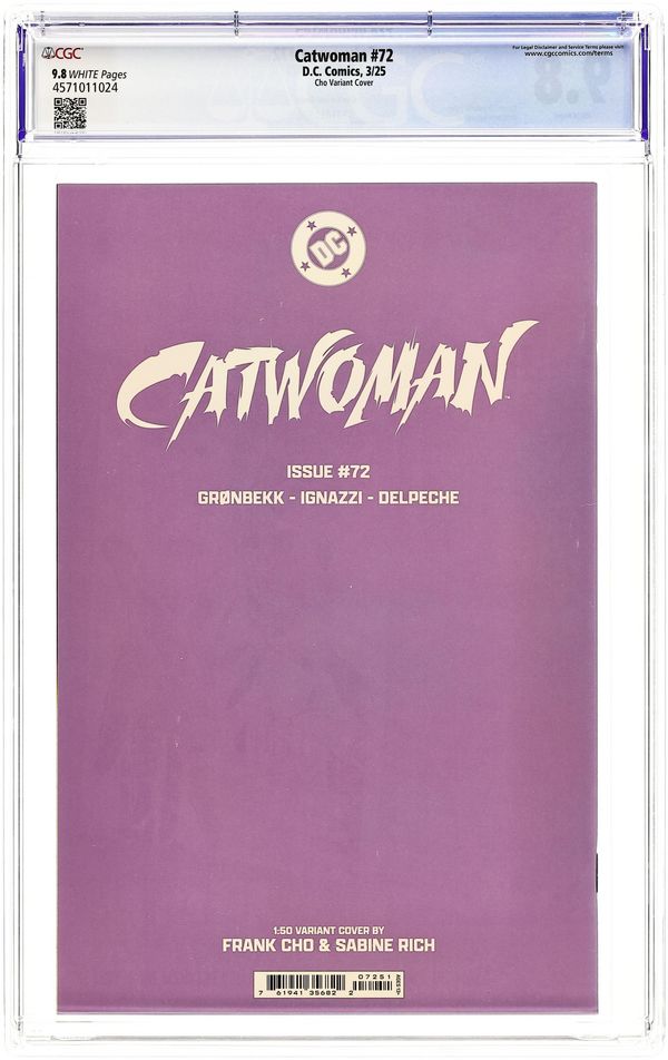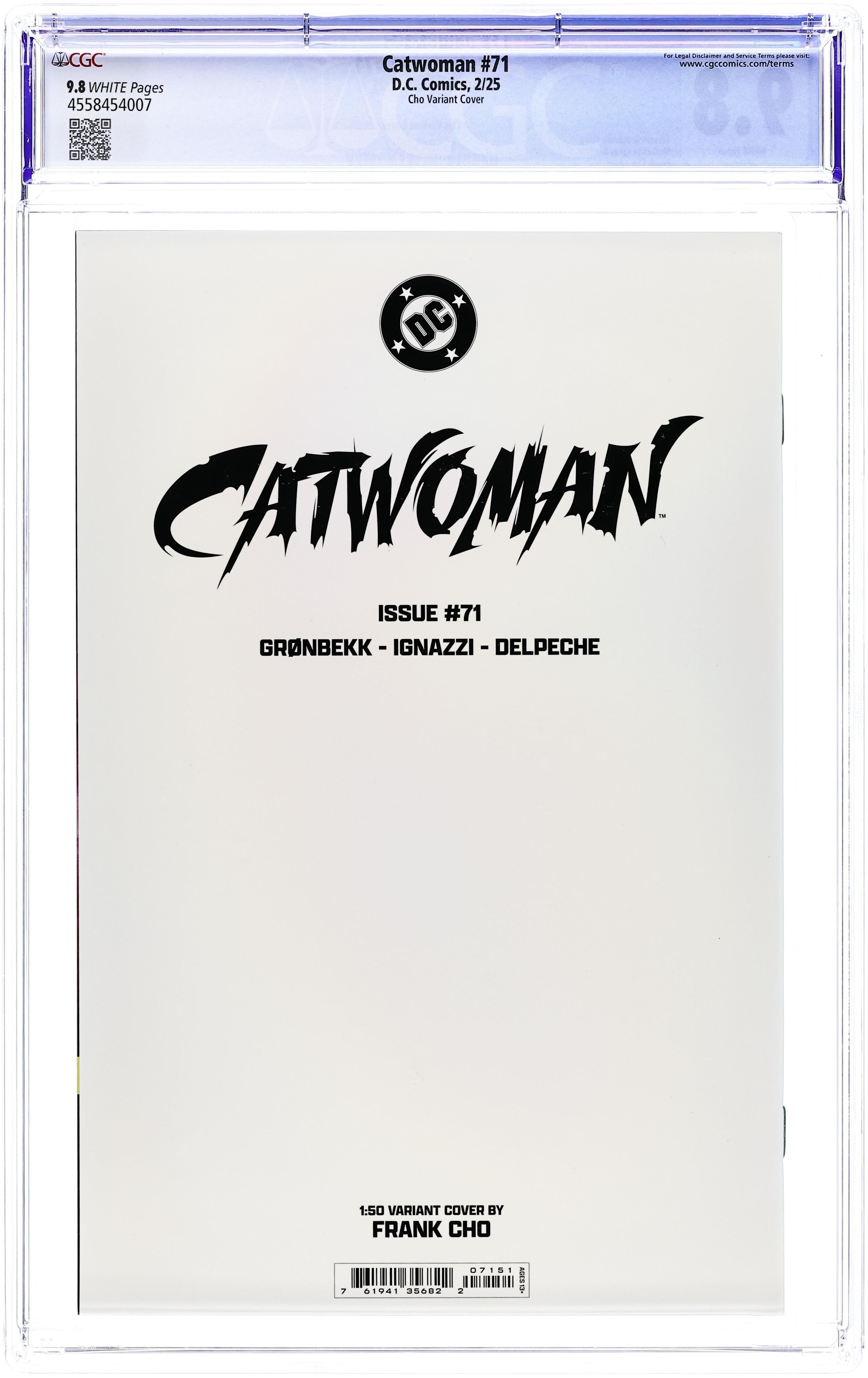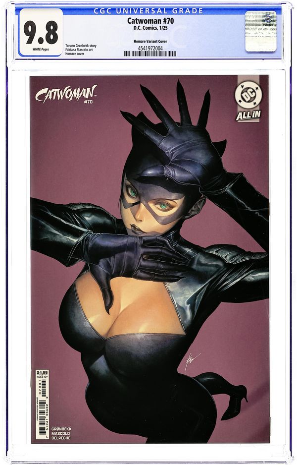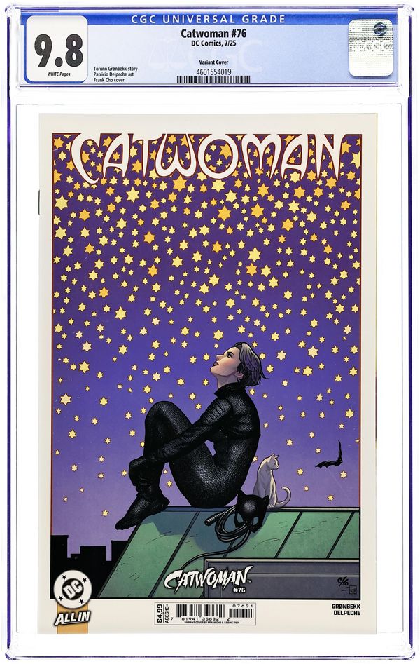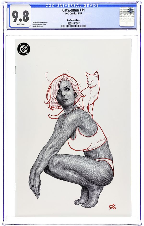 Limited 1 for 50 Retailer Incentive Variant Cover. Written by Torunn Gronbekk. Art by Marianna Ignazzi. Cover by Frank Cho. WHAT'S ONE CATWOMAN BETWEEN GOOD FRIENDS? Selina's international hunt brings her to Stockholm in search of an old acquaintance who has become a crime lord there... Of course, she's pretty sure he might be the one who's put a price on her head, so she's going to need to sneak in if she wants to get answers. Luckily for this cat, there's a fancy-dress party that's the perfect opportunity to slink in unnoticed. 32 pages, full color. Rated T+ Cover price $4.99.