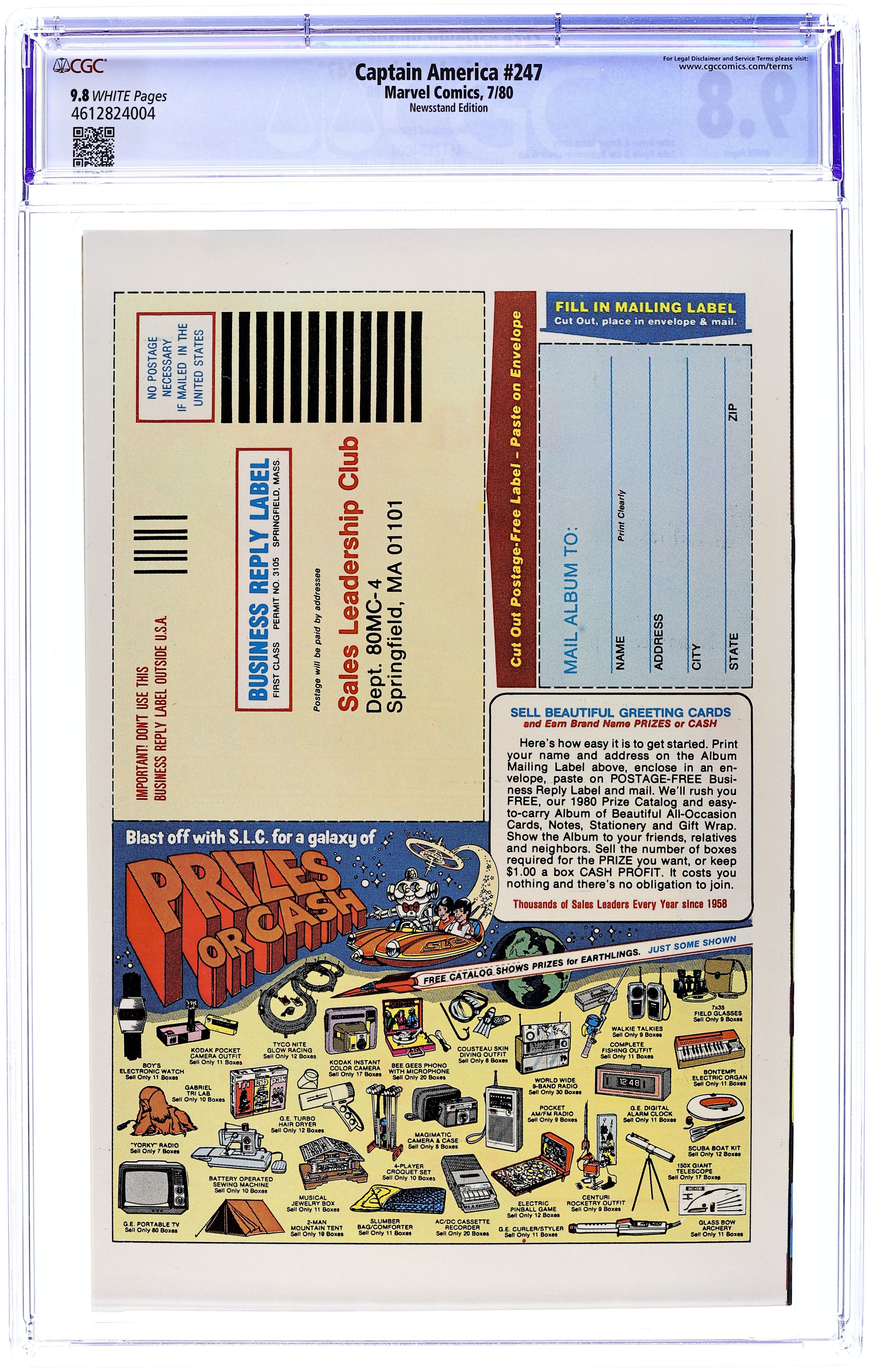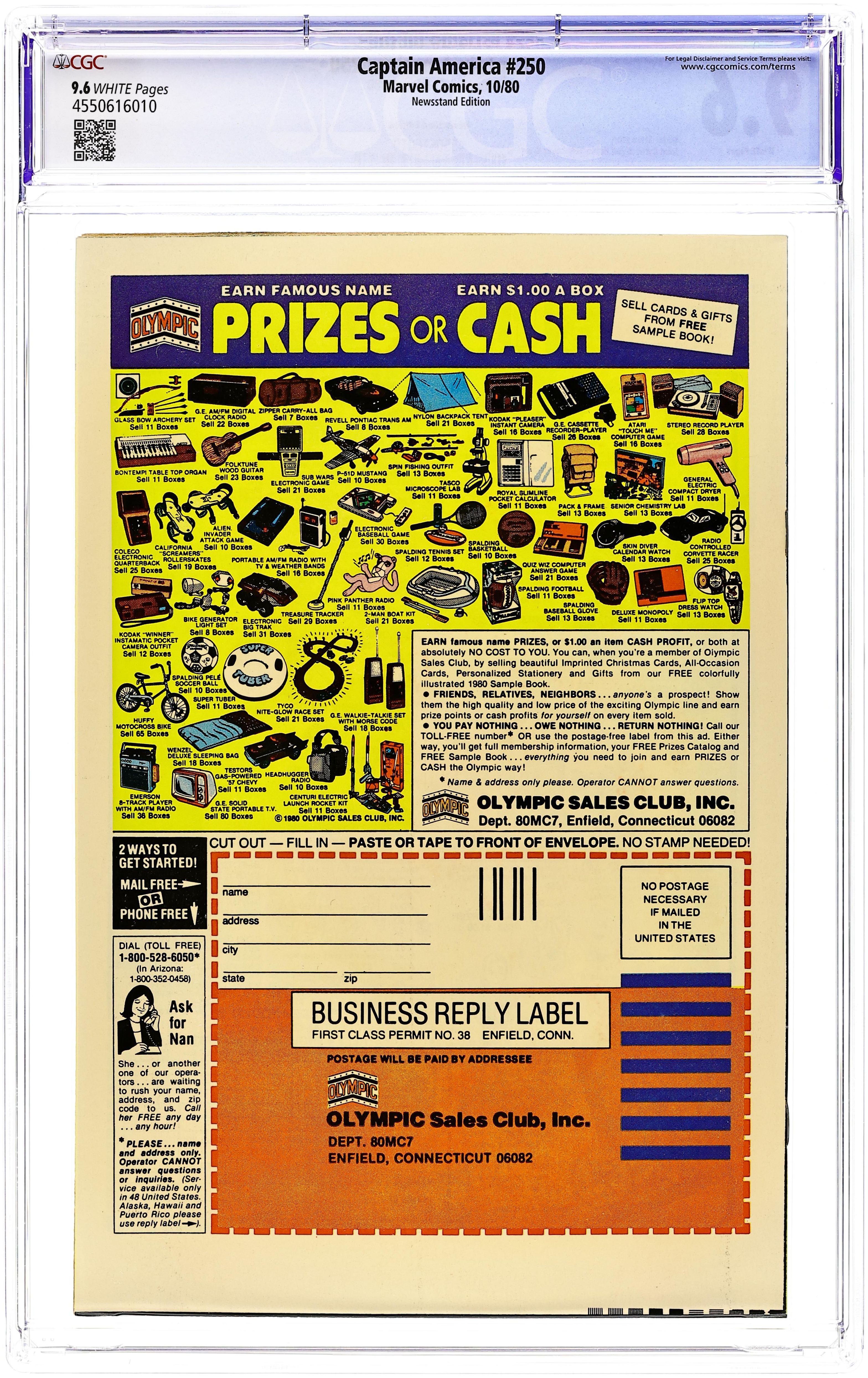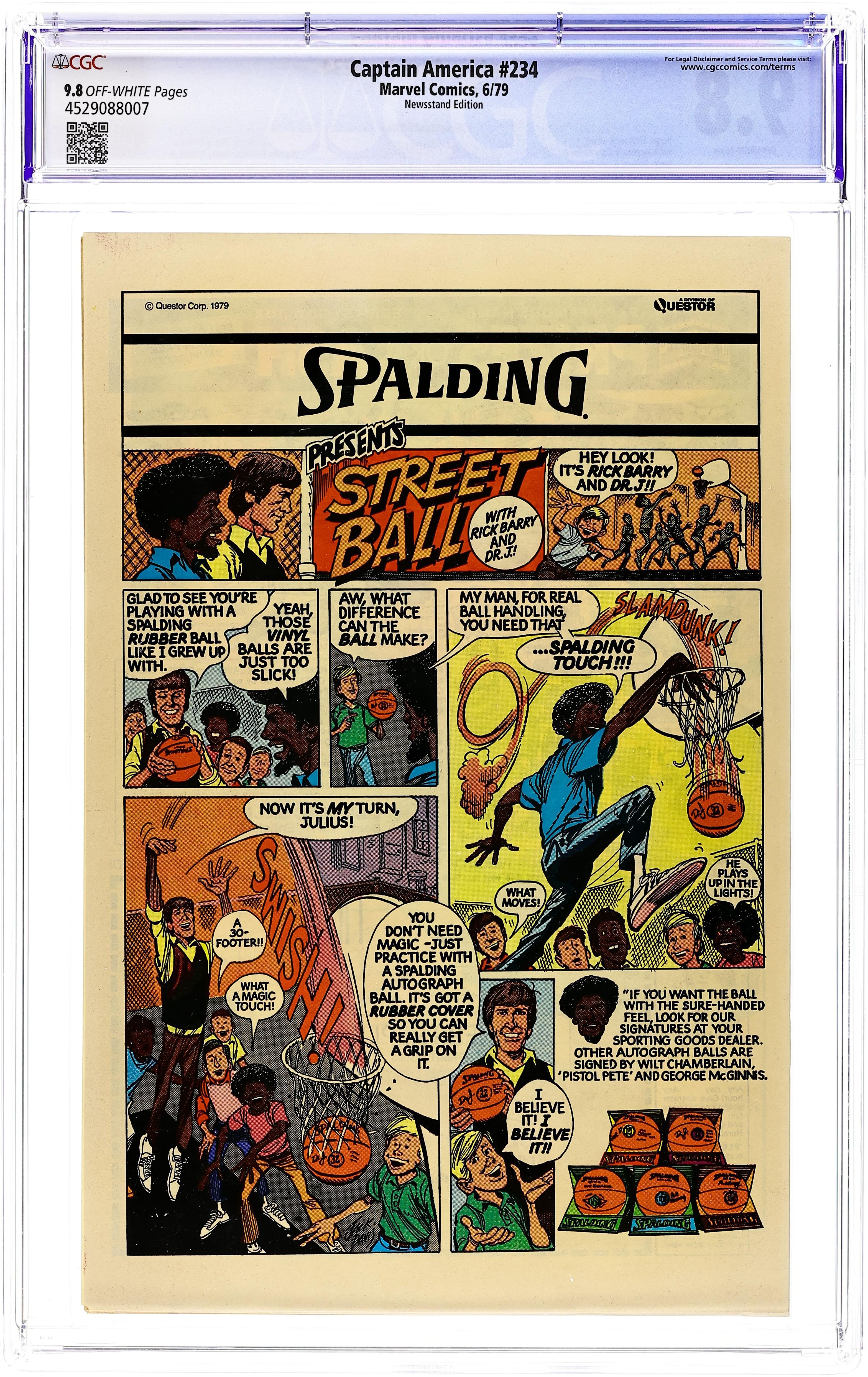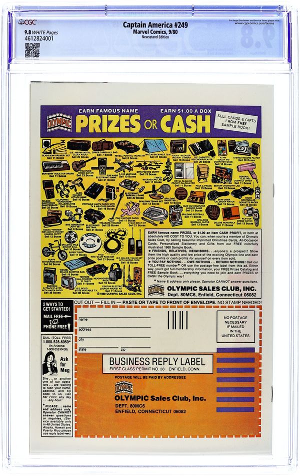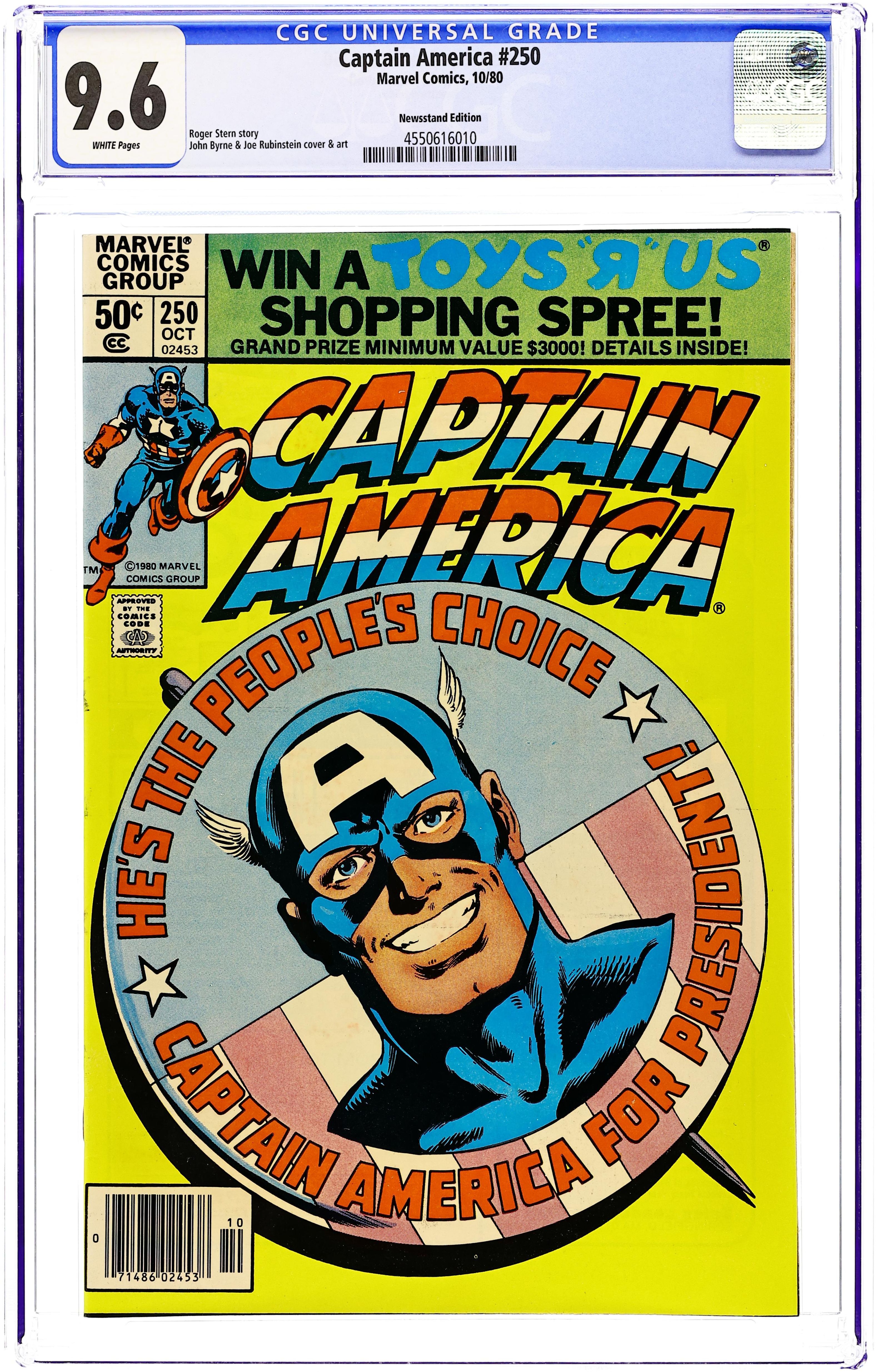 Newsstand Edition. "Death of a Legend?" Part 2 of 3. Script by J.M. DeMatteis. Pencils by Mike Zeck. Inks by Frank McLaughlin. Cover by Mike Zeck and John Beatty. While Cap is in Los Angeles looking for the imposter who is masquerading as Nomad, a shadowy group called the Nihilist Order terrorizes the city. Is there a connection between the phony Nomad (aka Eddie Ferbel) and the Nihilist Order? The star-spangled avenger thinks so! When the city of Los Angeles hosts the Captain America Day Parade, the Nihilist Order strikes again -- with a big new ally: the Ameridroid! The 12-foot android knocks out Nomad and then captures the Living Legend! Just like the Red Skull planned! (Note: Cap previously fought the Ameridroid in Captain America 221.) 36 pages. Cover price $0.50.