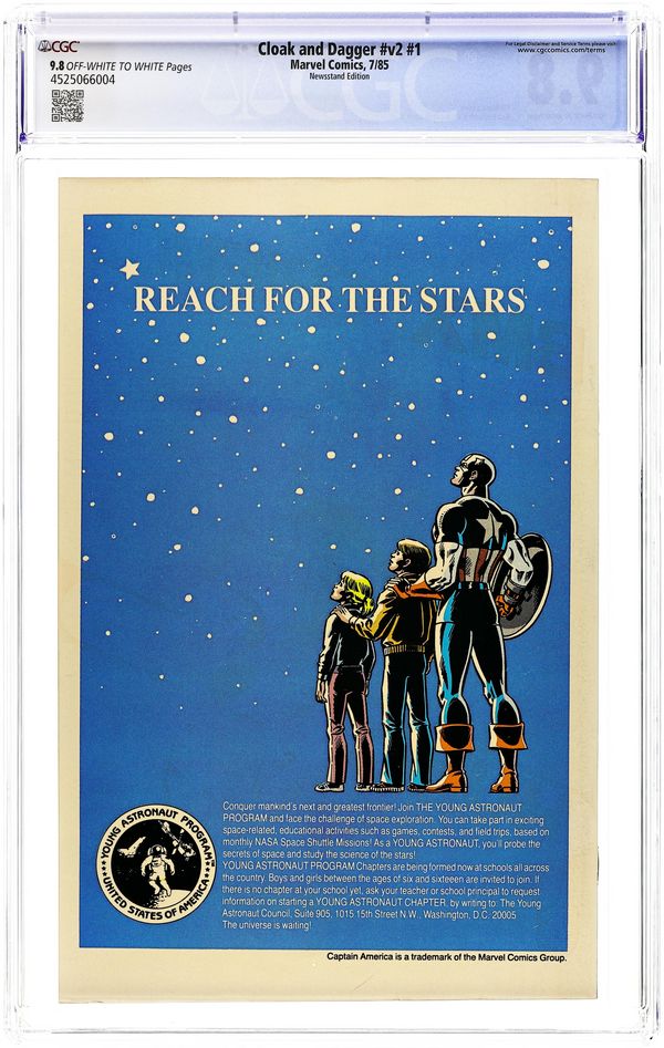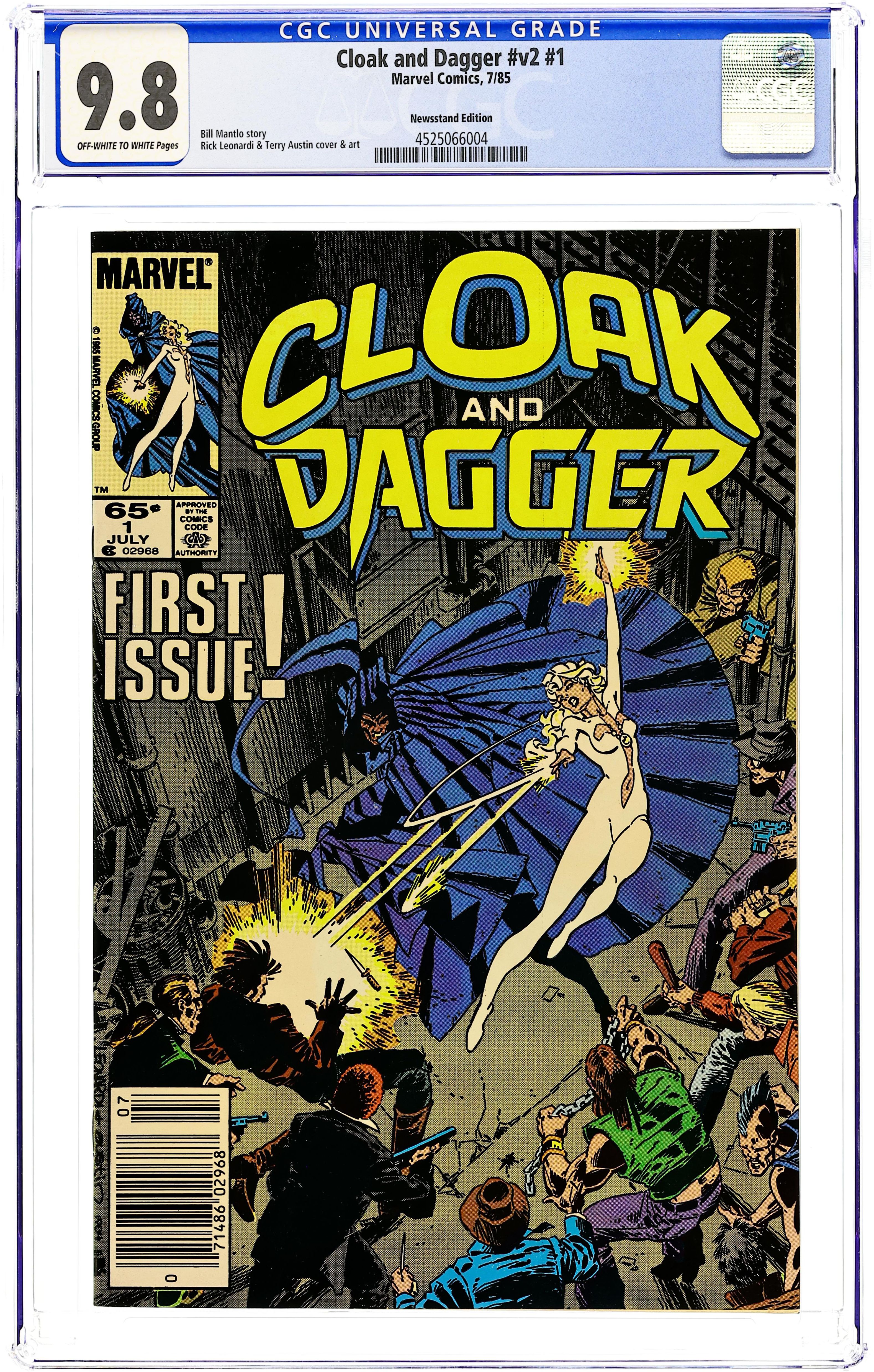 Newsstand Edition. Cover pencils by Rick Leonardi, inks by Terry Austin. Sinners All!, script by Bill Mantlo, pencils by Rick Leonardi, inks by Terry Austin; Cloak and Dagger take down a porno shop employing slave labor; Dagger decides to visit her birth mother after getting the information from Father Delgado; origin retold. 36 pgs. $0.65. Cover price $0.65.