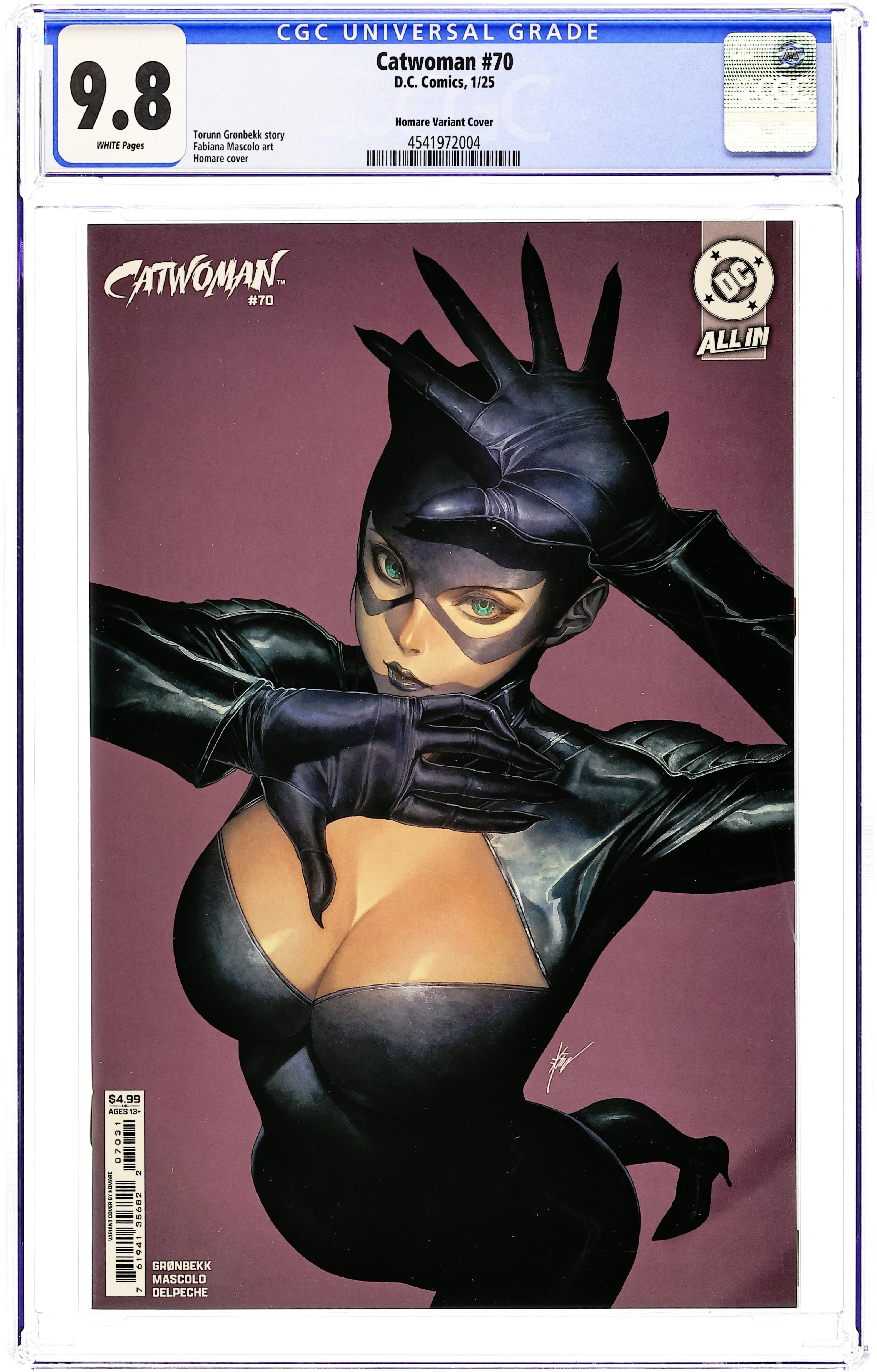 Limited 1 for 50 Retailer Incentive Variant Cover. Written by Torunn Gronbekk. Art by Marianna Ignazzi. Cover by Frank Cho. BURNING DOWN THE HOUSE! As Selina dances her way through devils and the damned at a Dante's Divine Comedy-themed party, a tale of pain and woe unfolds in Stockholm. There, Catwoman will find the first of her prizes as she does battle against the people after her head. By the end, Catwoman will find herself in a literal inferno of her own making! 32 pages, full color. Rated T+ Cover price $4.99.