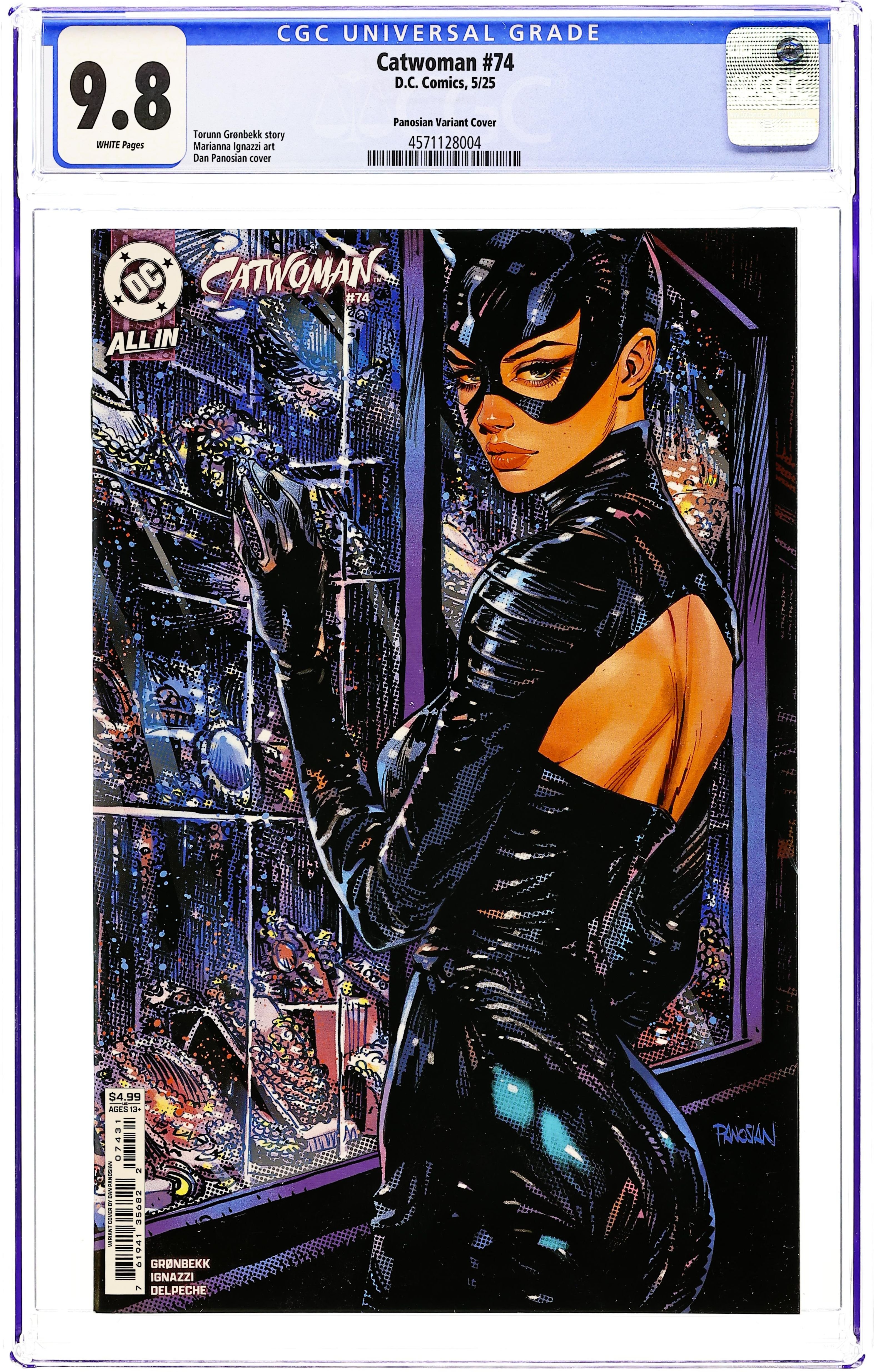 Written by Torunn Gronbekk. Art by Marianna Ignazzi. Cover by Dan Panosian. CAN SELINA DISAPPEAR IN TOKYO? With everyone in Tokyo searching for her, Catwoman finds herself face-to-face with Alexander Belov and another unexpected foe. Can she secure the second key to the Belov fortune, or is this the end of the line for the feline fatale? Plus, the noose continues to tighten around the necks of Selina's old acquaintances. 32 pages, full color. Rated T+ Cover price $4.99.