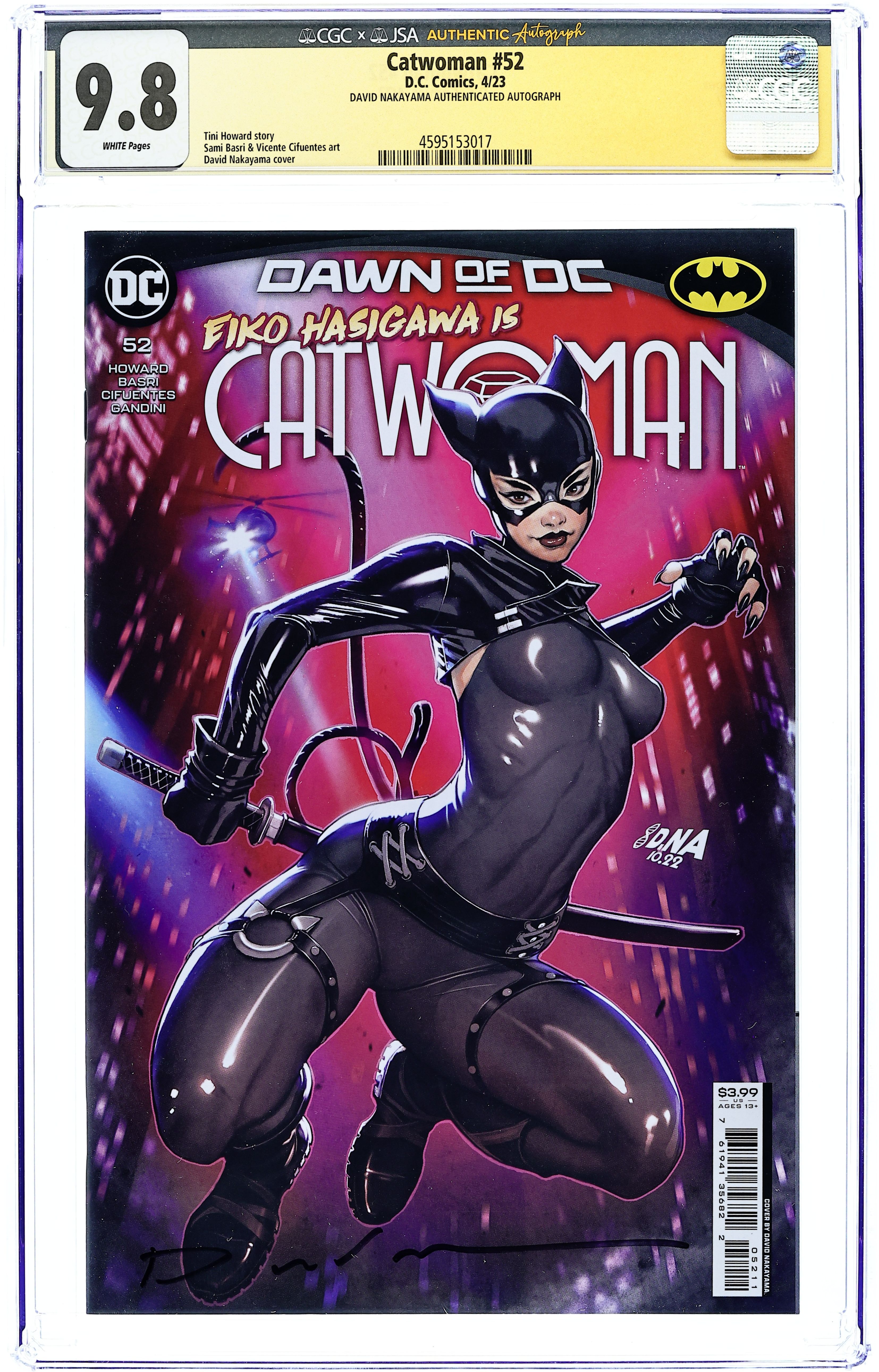 Written by Tini Howard. Art by Sami Basri. Cover by David Nakayama. Looks like cat is the new black in Gotham jail as Selina quickly finds herself clawing her way up as the queen cat behind bars by making friends with all the wrong types (which are of course also exactly her types). Meanwhile, Eiko Hasigawa continues to prowl the Gotham streets as the Catwoman keeping the mob bosses in check, with a little help from...Tomcat. 32 pages, full color. Rated T+ Cover price $3.99.