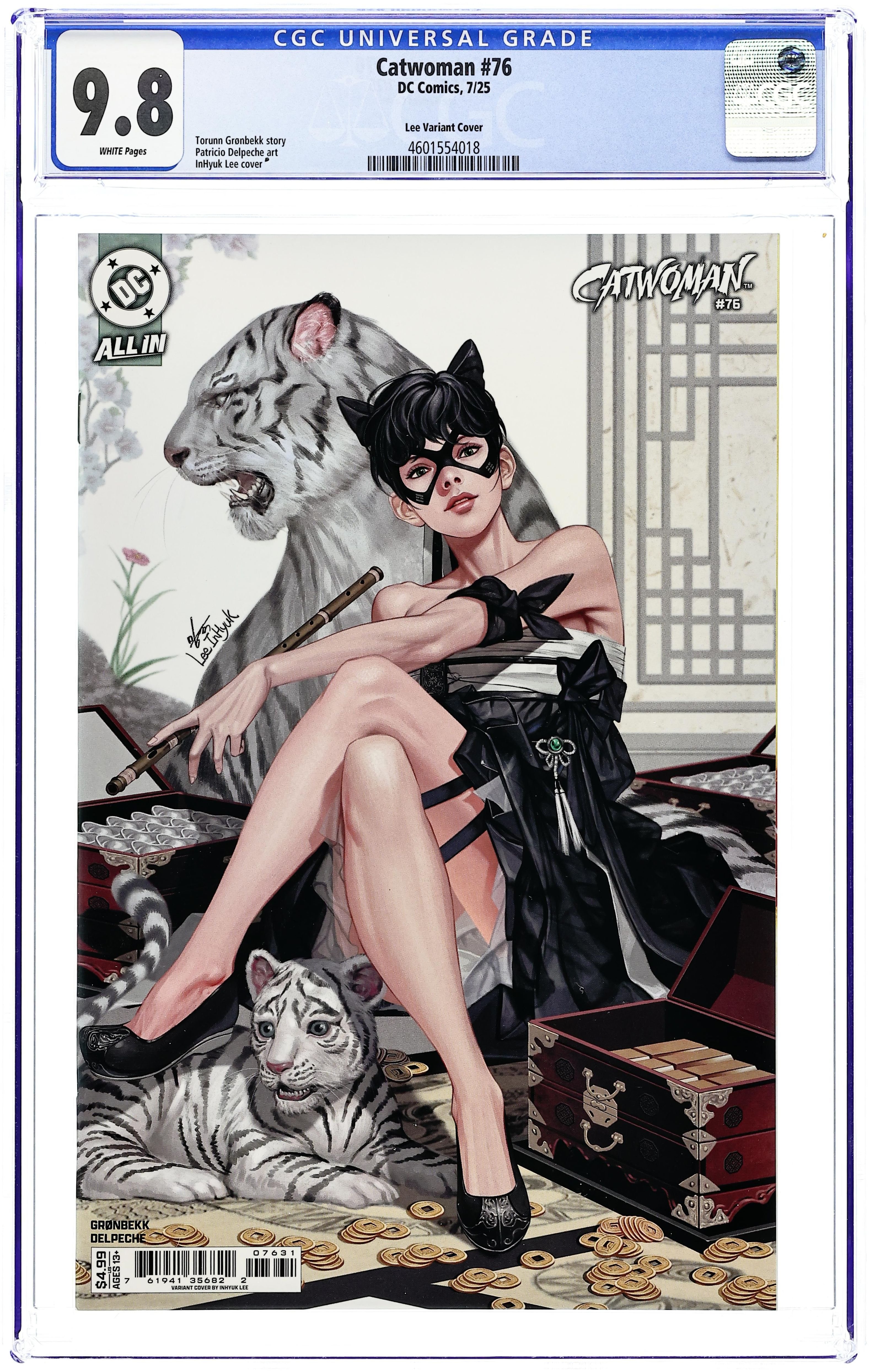 Written by Torunn Gronbekk. Art by Patricio Delpeche. Cover by Inhyuk Lee. CATWOMAN ON THE BRINK! As Catwoman's life hangs in the balance, Selina's mind drifts back to her final days as Evie Hall and the deadly events that led her to discard that identity and return to Gotham City. 32 pages, full color. Rated T+ Cover price $4.99.