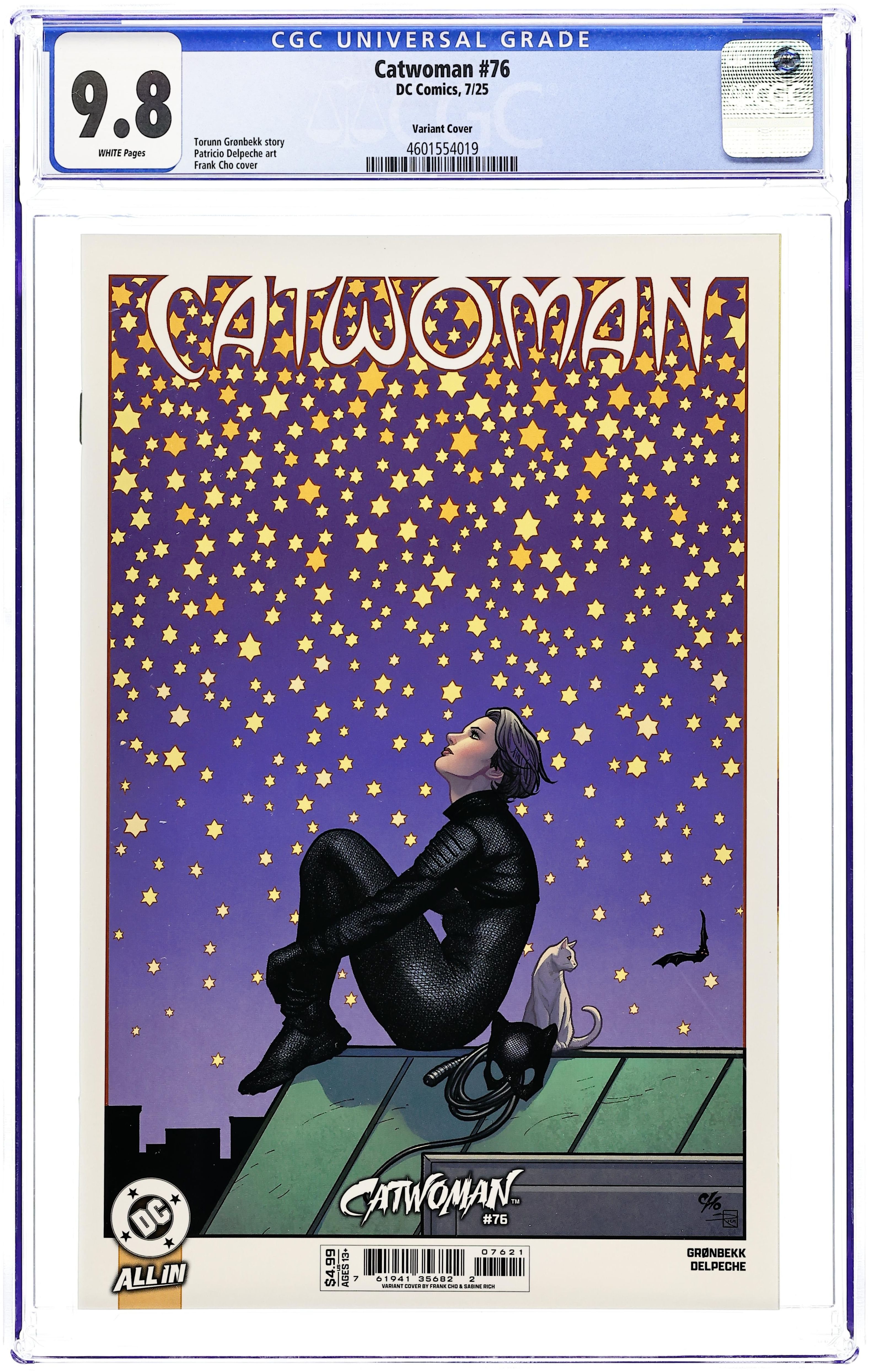 Written by Torunn Gronbekk. Art by Patricio Delpeche. Cover by Frank Cho. CATWOMAN ON THE BRINK! As Catwoman's life hangs in the balance, Selina's mind drifts back to her final days as Evie Hall and the deadly events that led her to discard that identity and return to Gotham City. 32 pages, full color. Rated T+ Cover price $4.99.